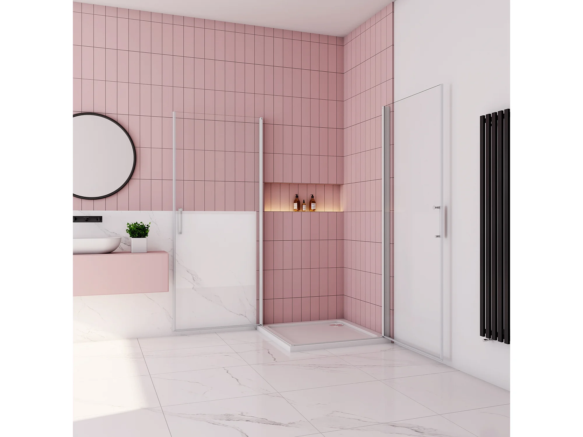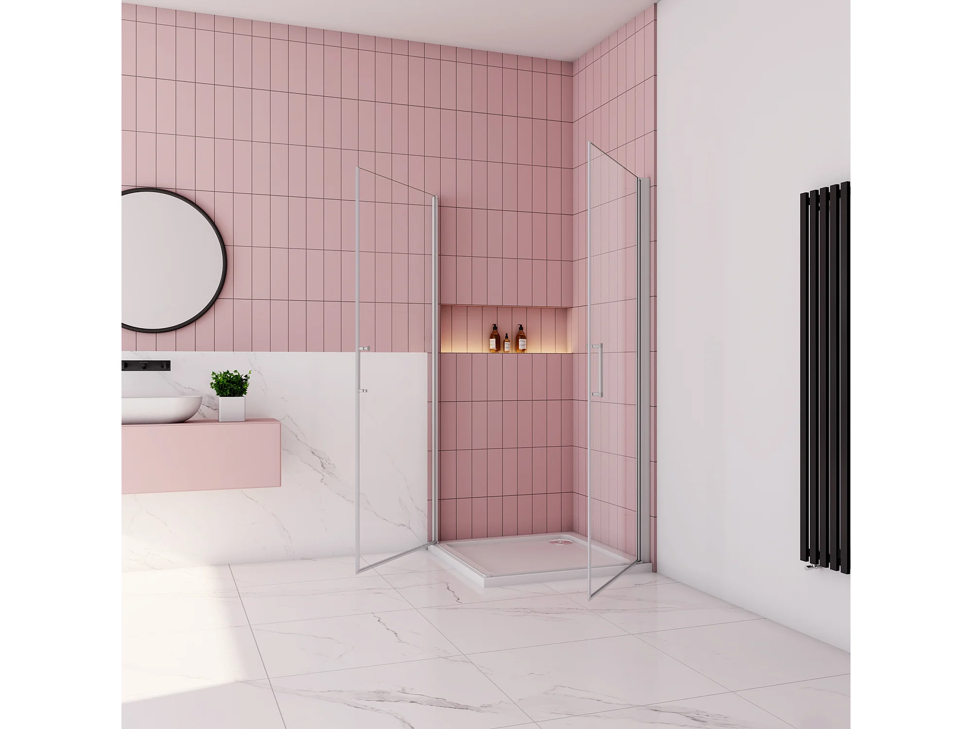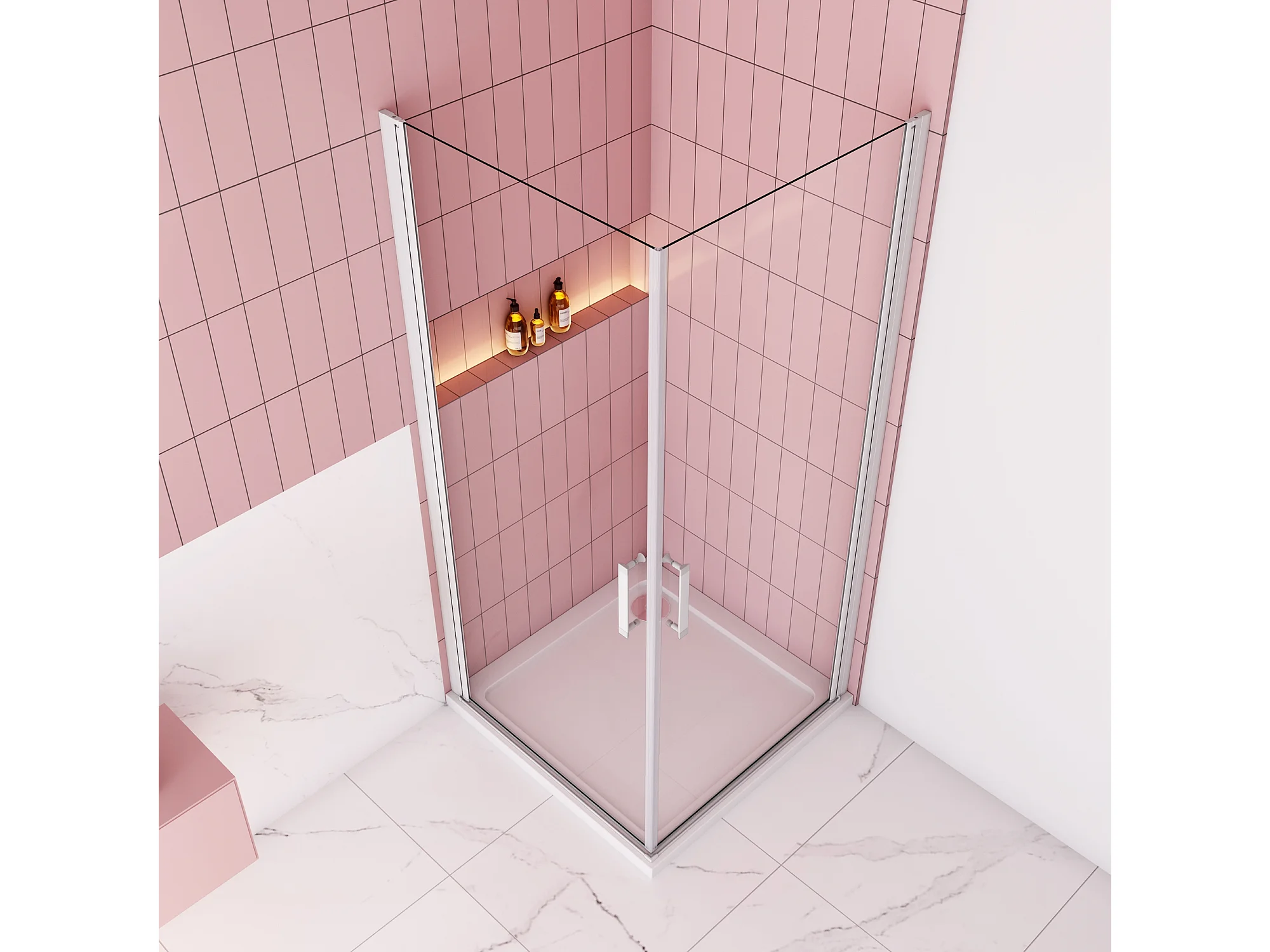 70x80x185cm Douchecabine Vierkante dubbele draaideuren,5 mm gehard veiligheidsglas,glanzend chroom profiel