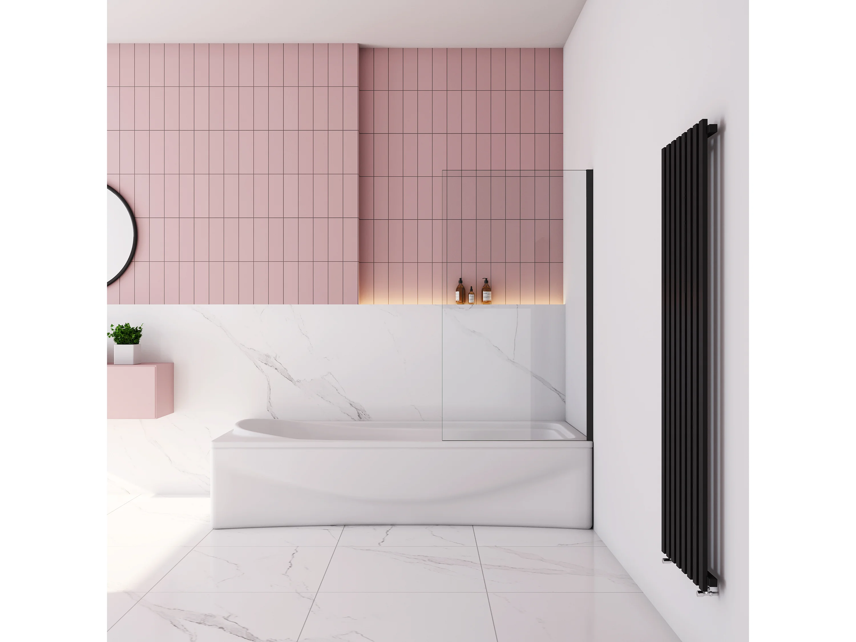 75x140cm Badscherm badwand draaibaar,4mm helder veiligheidsglas - mat wit profiel