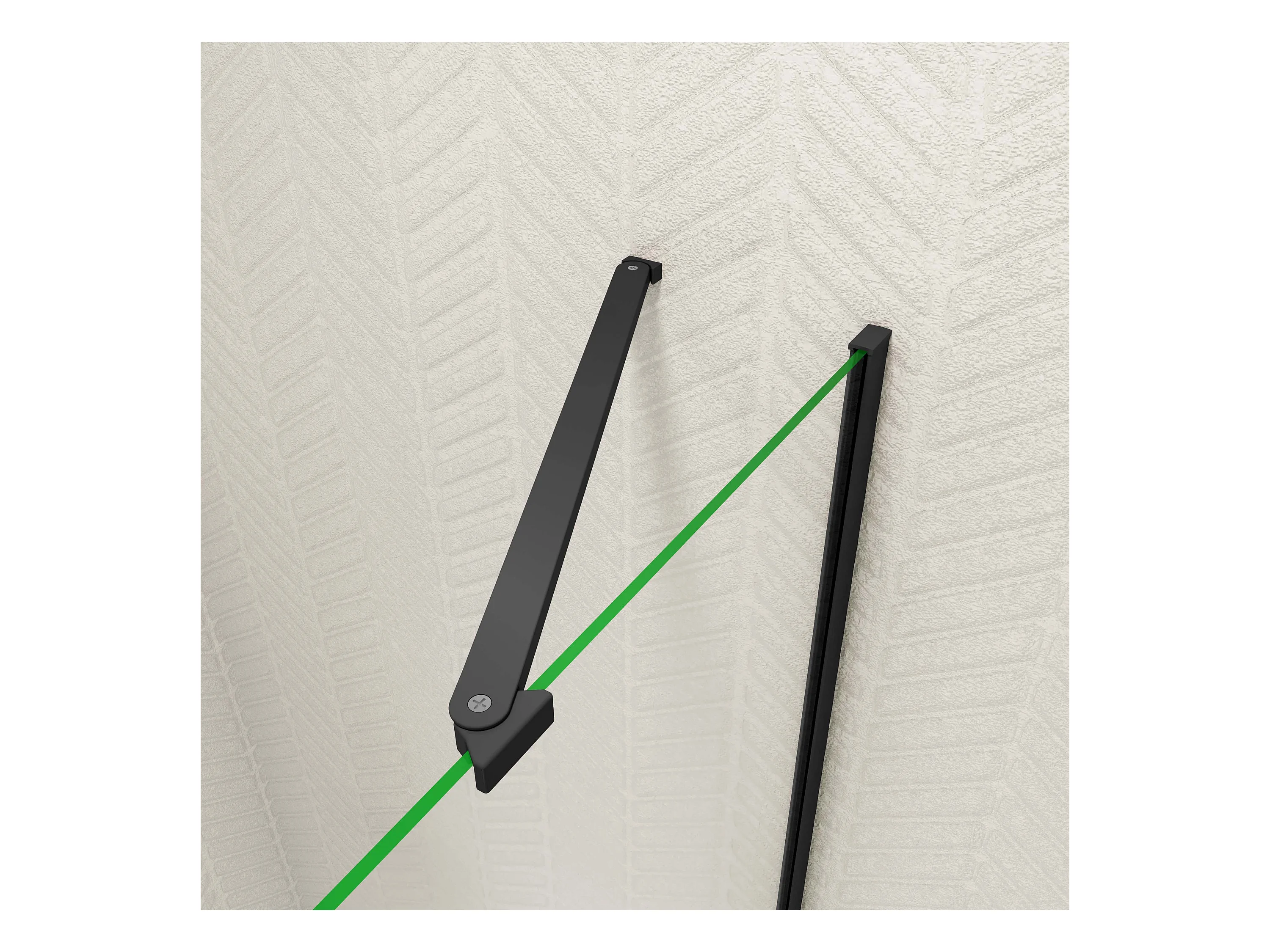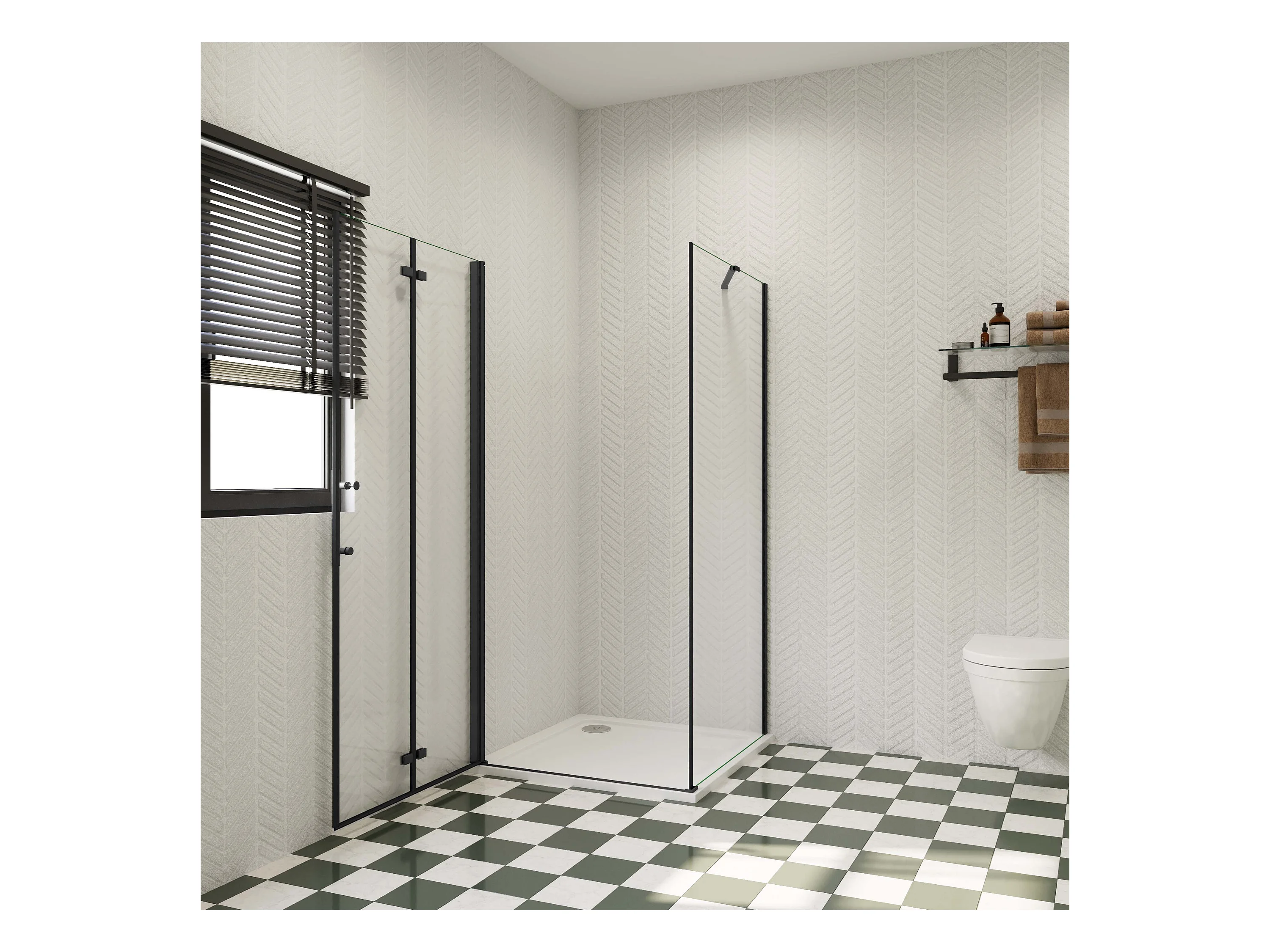 76x70x195cm douchecabine met inklapbare vouwdeur en vaste zijwand, 6mm helder EasyClean veiligheidsglas,mat zwarte aluminium frame, stabilisatiestang 50 cm