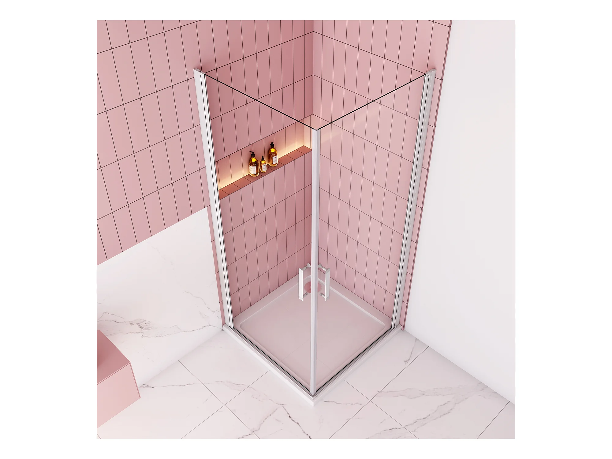 B:76xD:76xH:185cm Douchecabine draaideur nisdeur+zijpaneel 5mm gehard veiligheidsglas,profiel van glanzend chroom