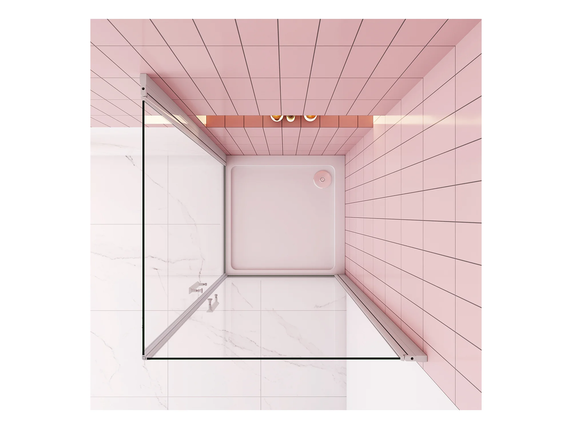 Douchecabine 90x90x185cm,draaideur+zijwand,6mm NANO EasyClean veiligheidsglas,F-vorm:90cm stabilisator (kan worden gesneden),profiel van glanzend chroom.