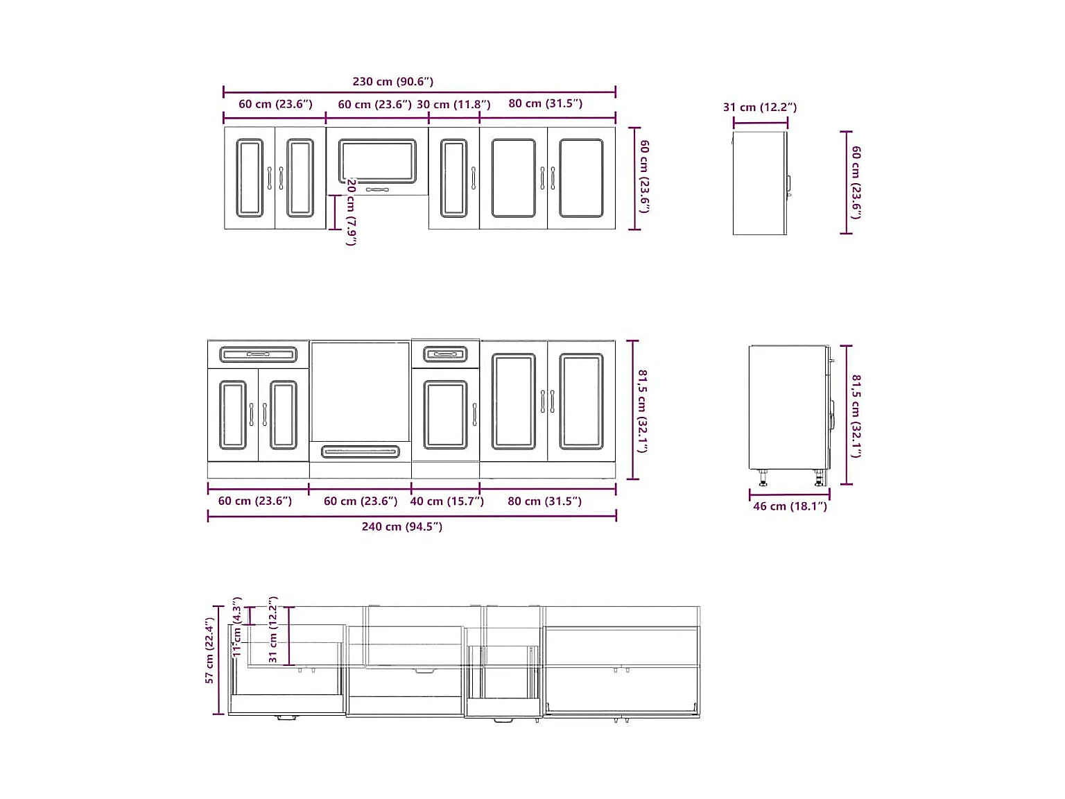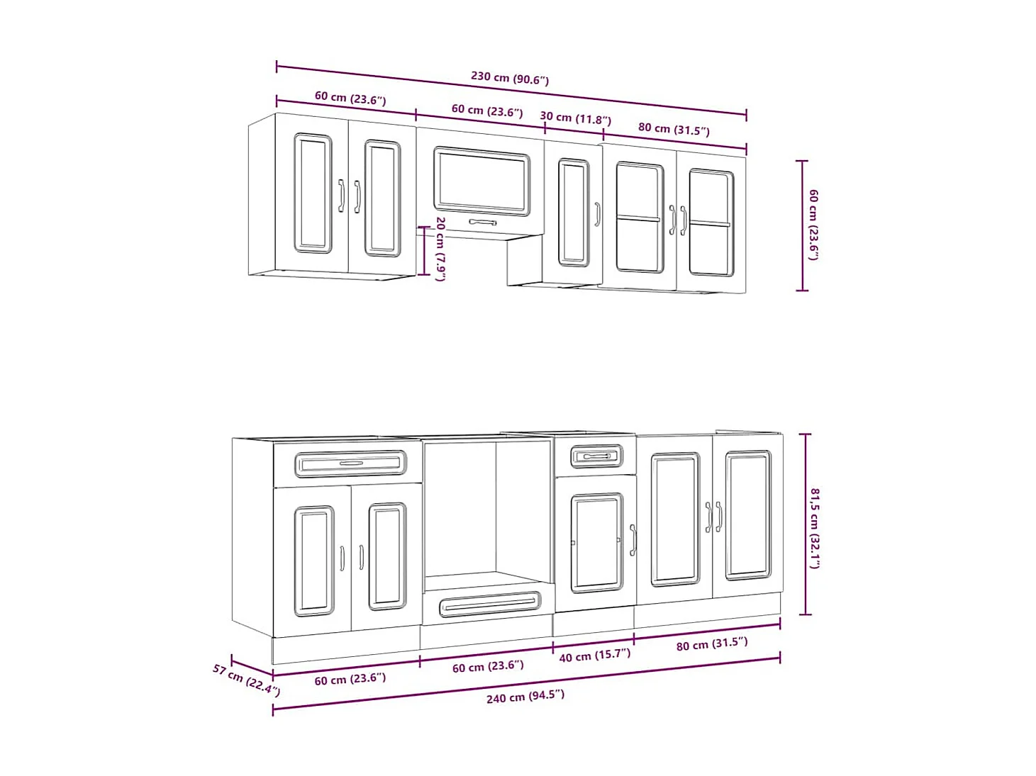 8-delige Keukenkastenset Kalmar bewerkt hout sonoma eikenkleur