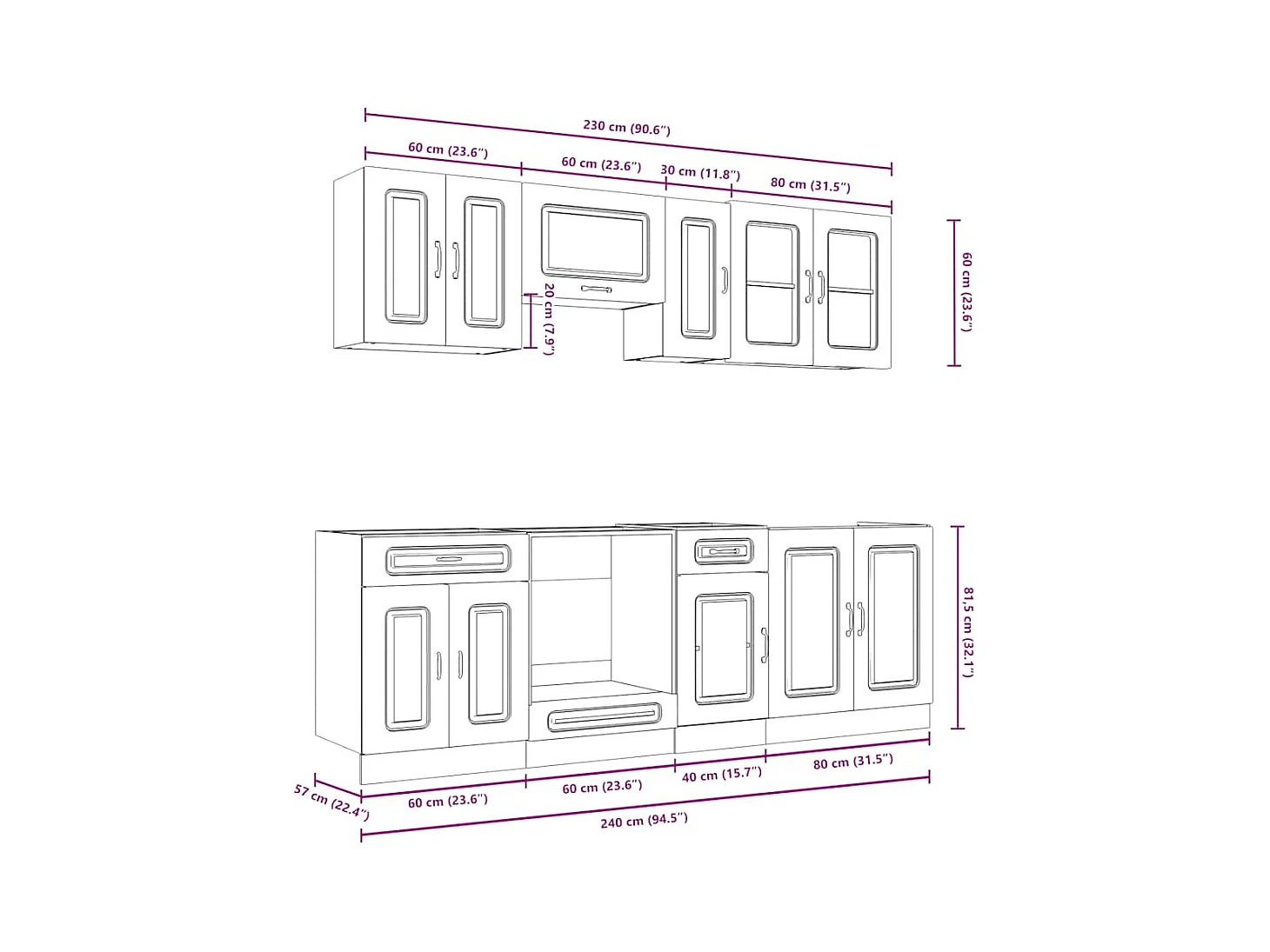 8-delige Keukenkastenset Kalmar bewerkt hout wit