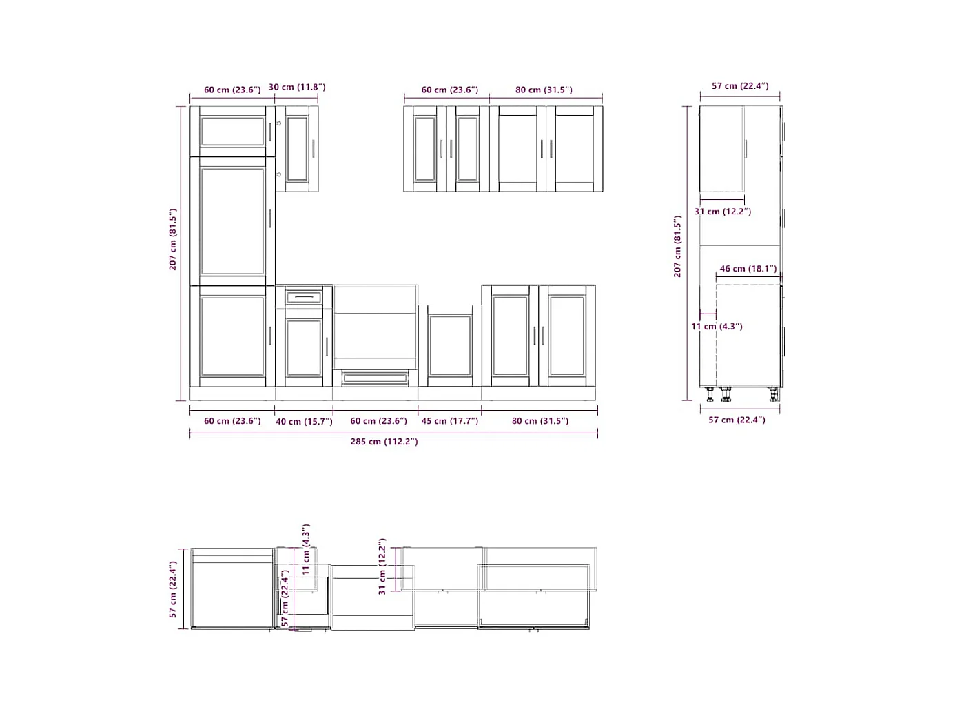 11-delige Keukenkastenset Kalmar bewerkt hout glanzend wit