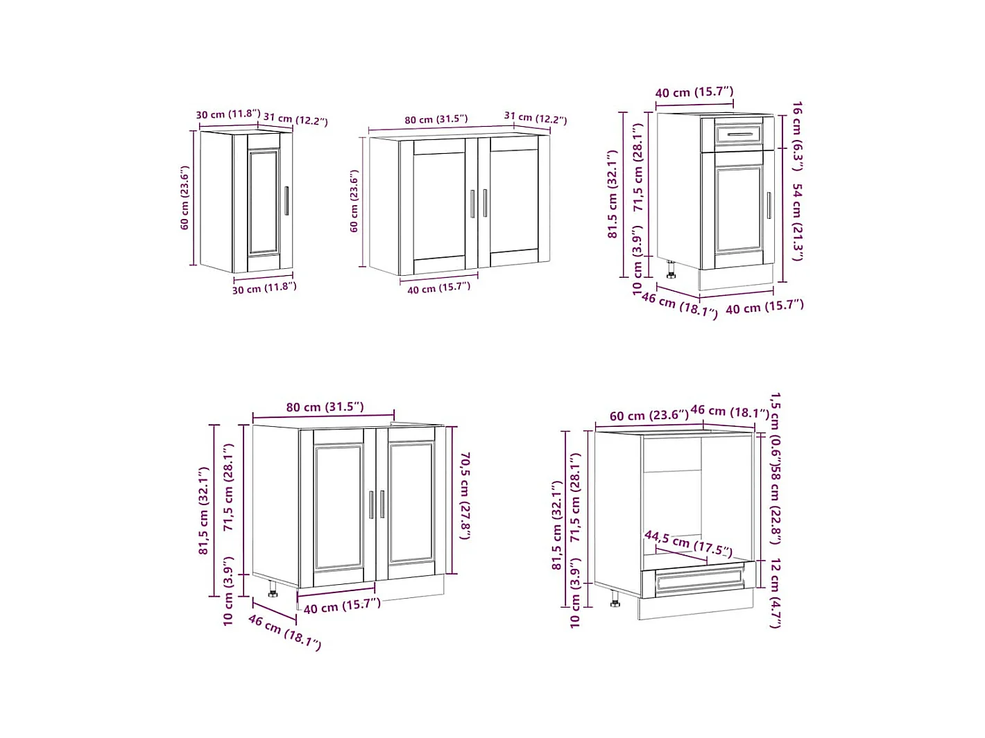 7-delige Keukenkastenset Kalmar bewerkt hout wit