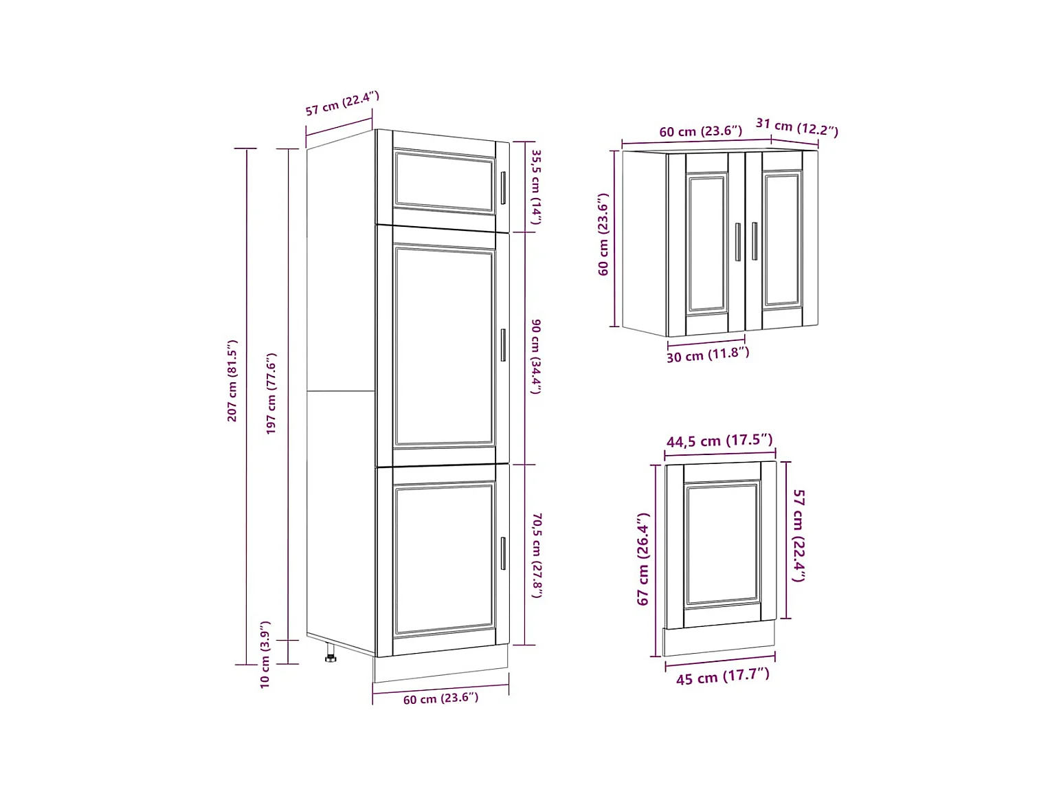 4-delige Keukenkastenset Kalmar bewerkt hout glanzend wit