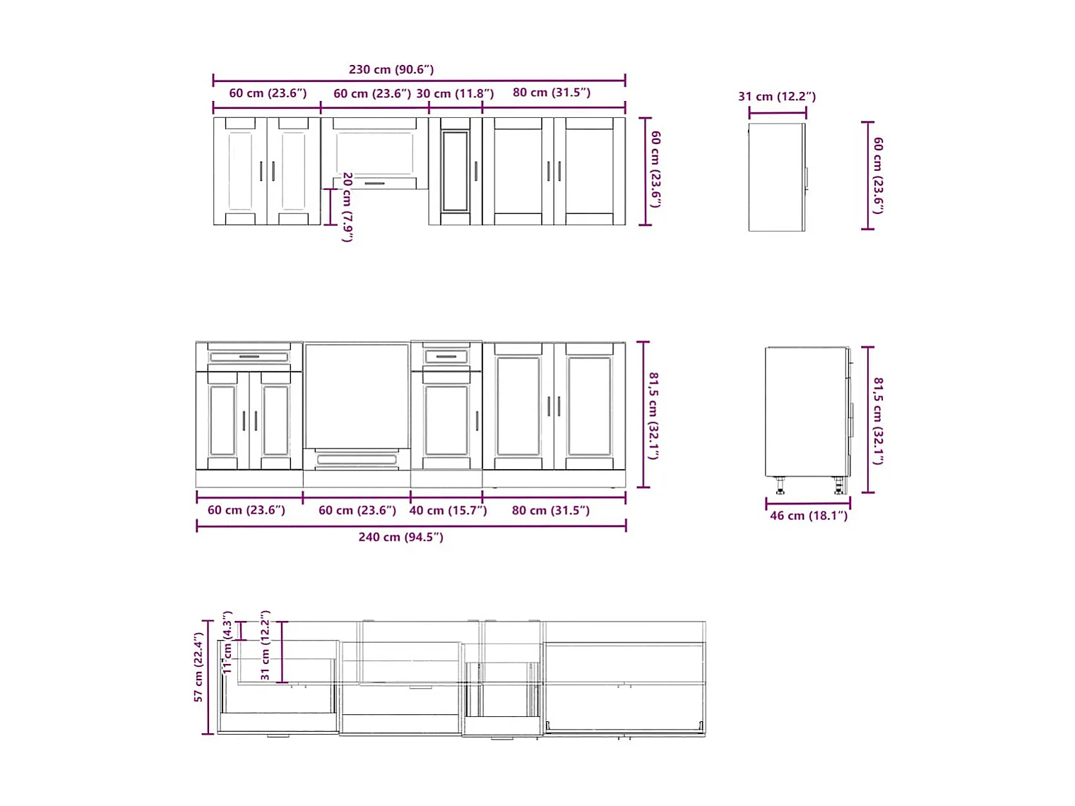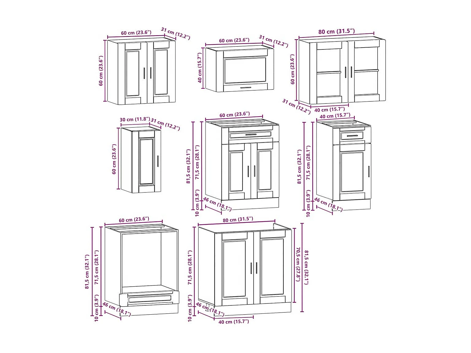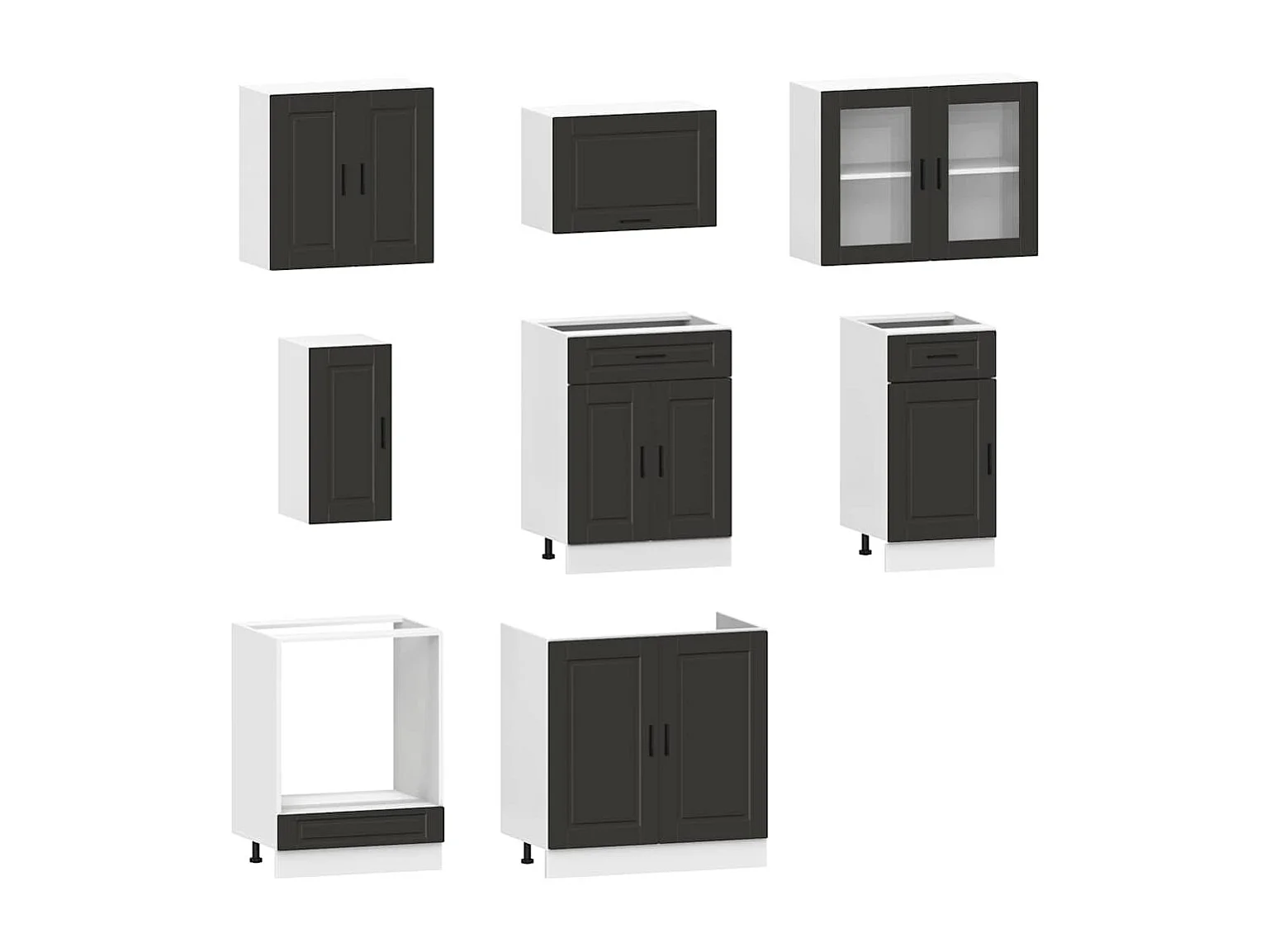 8-delige Keukenkastenset Porto bewerkt hout zwart