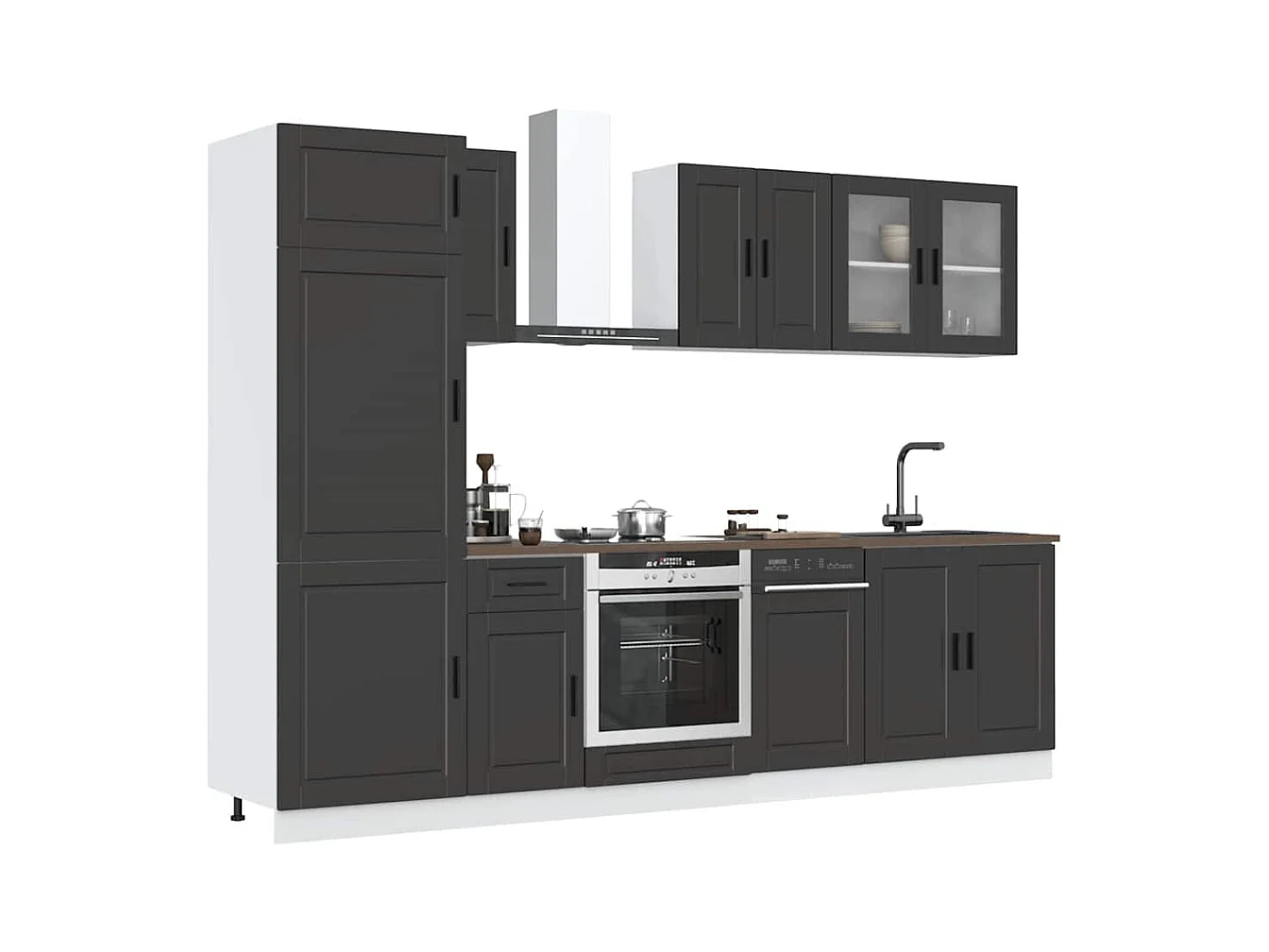 8-delige Keukenkastenset Kalmar bewerkt hout zwart