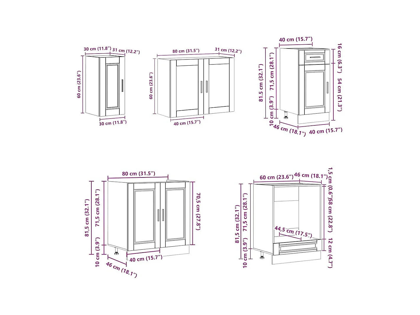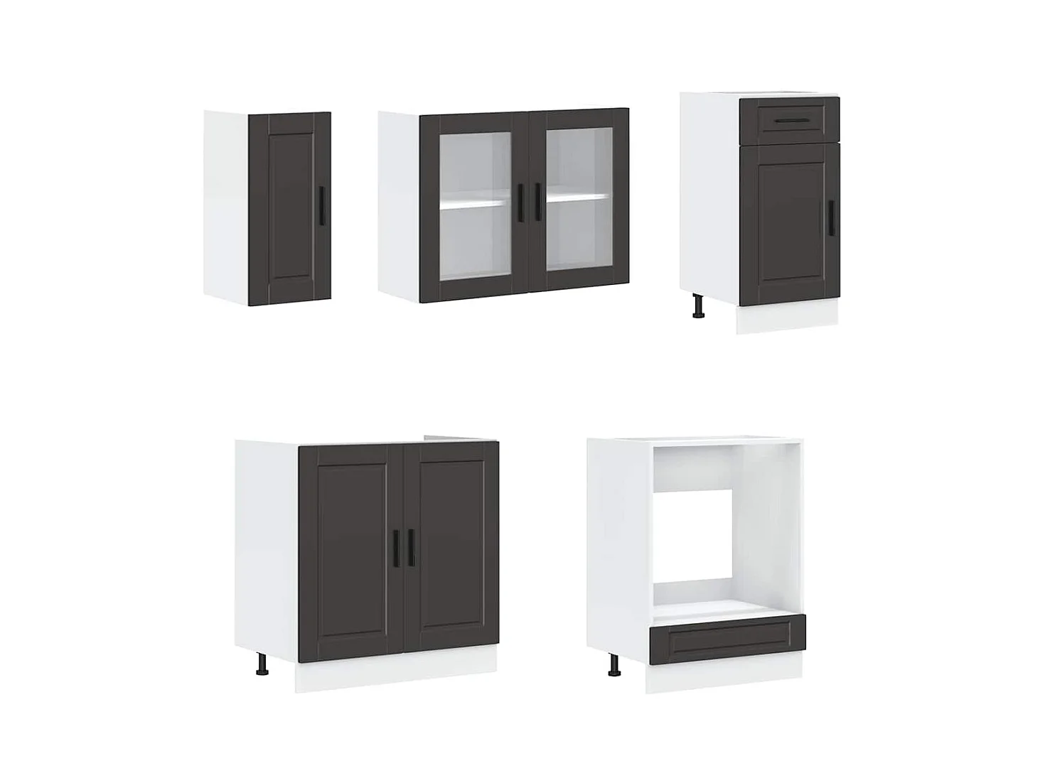 7-delige Keukenkastenset Porto bewerkt hout zwart