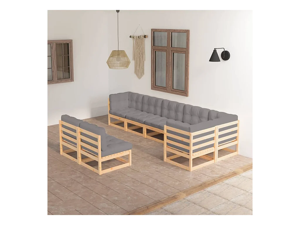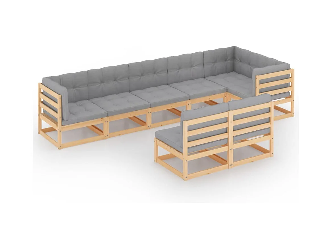 8-delige Loungeset met kussens massief grenenhout