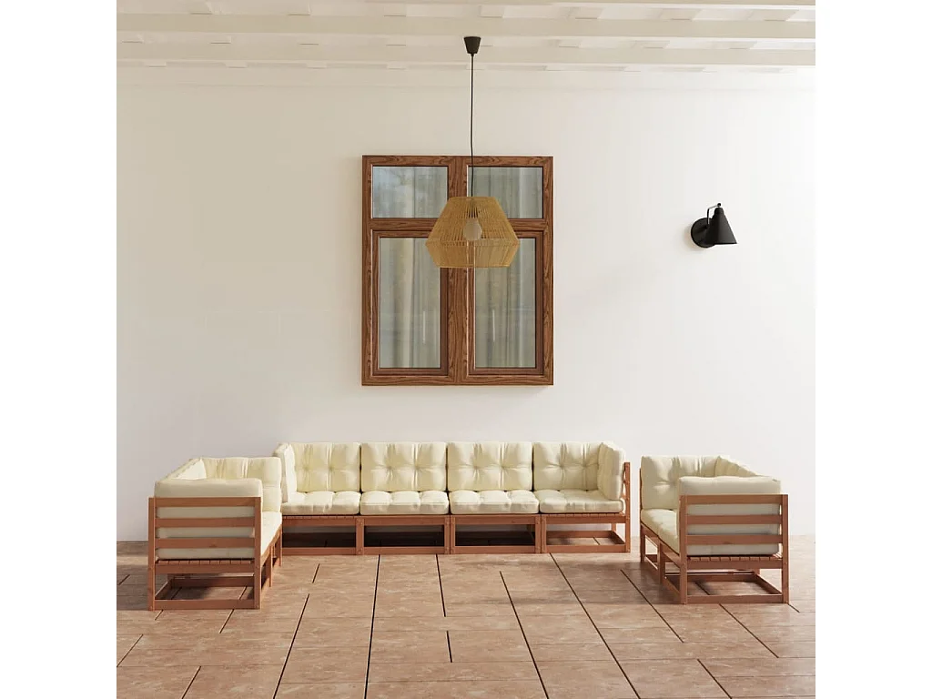 8-delige Loungeset met kussens massief grenenhout