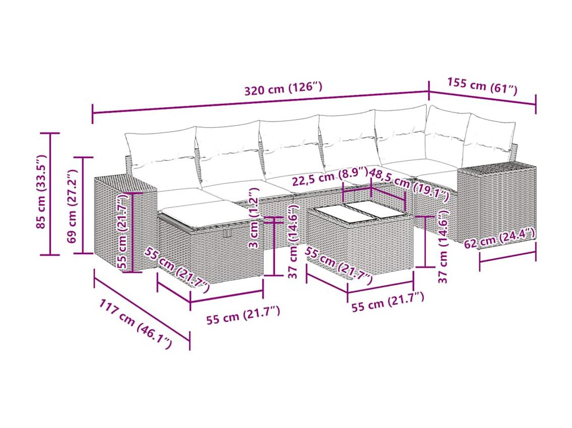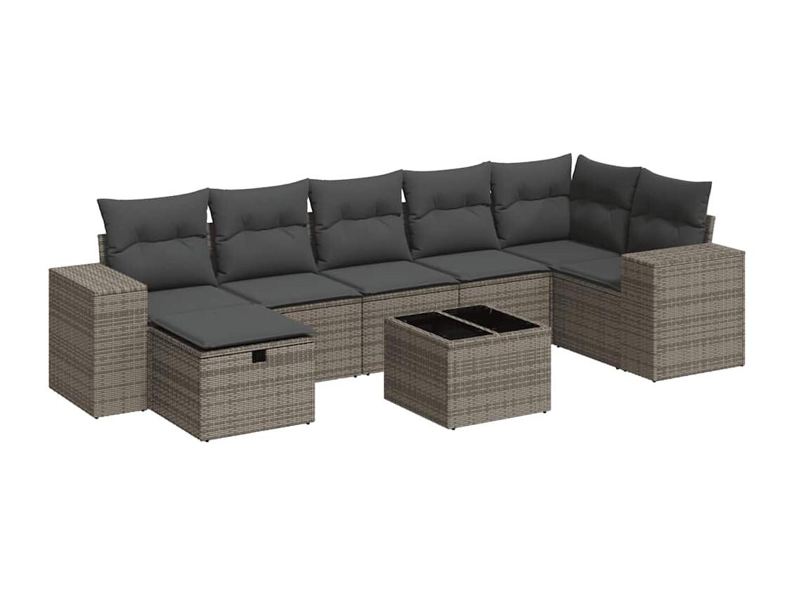 8-delige Loungeset met kussens poly rattan lichtgrijs