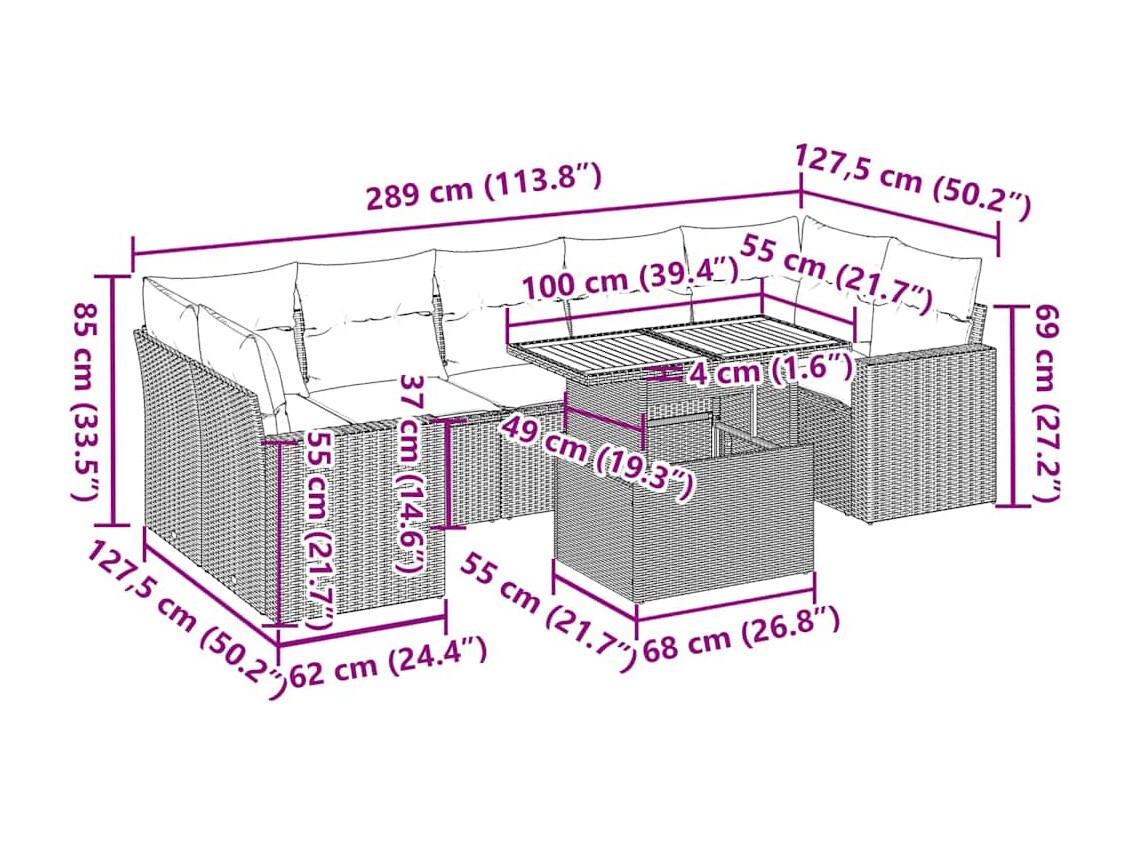 8-delige Loungeset met kussens poly rattan grijs