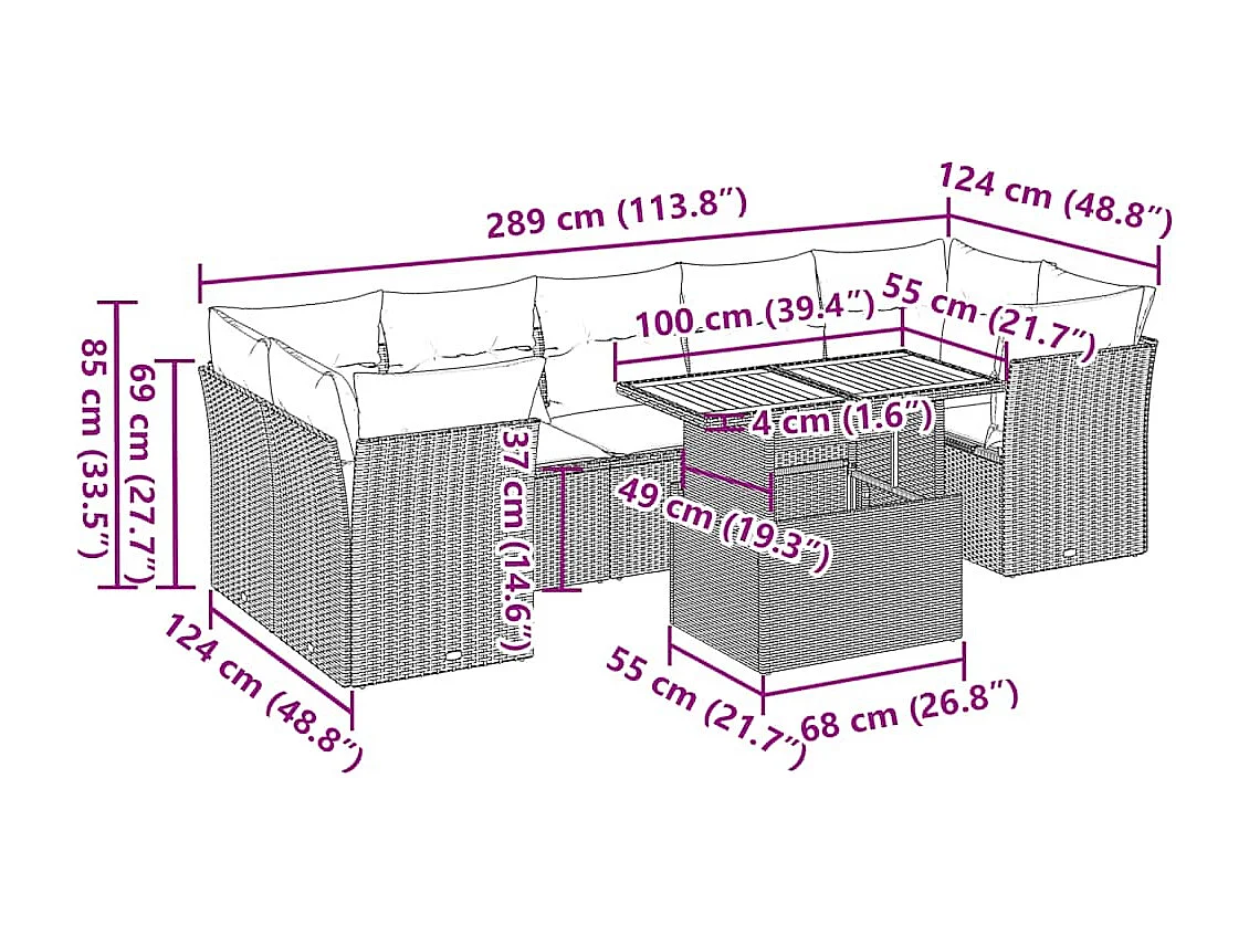 8-delige Loungeset met kussens poly rattan lichtgrijs