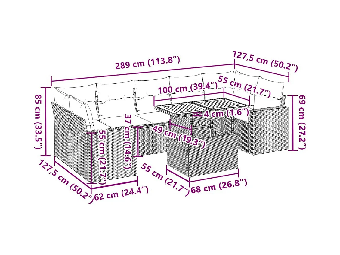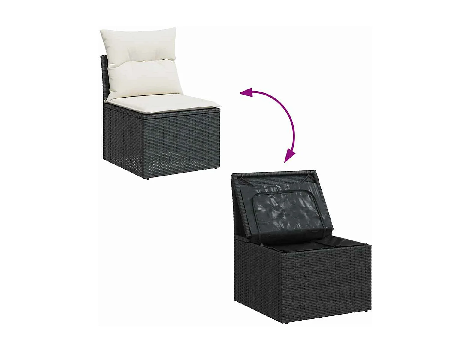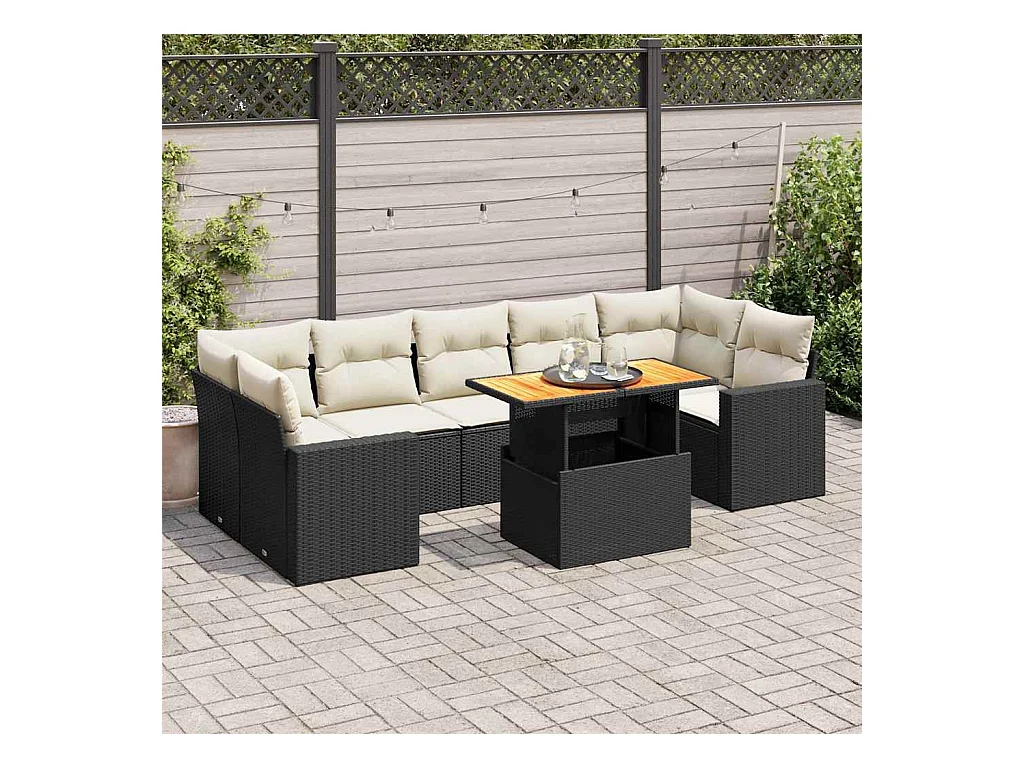 8-delige Loungeset met kussens poly rattan acacia zwart