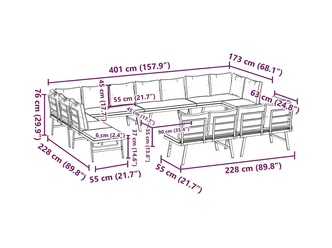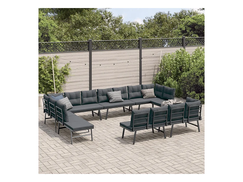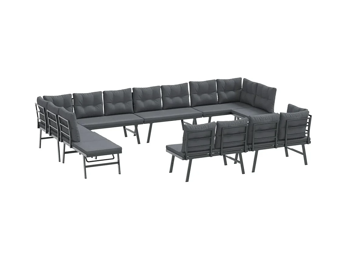 8-delige Tuinbankenset met kussens gepoedercoat staal zwart