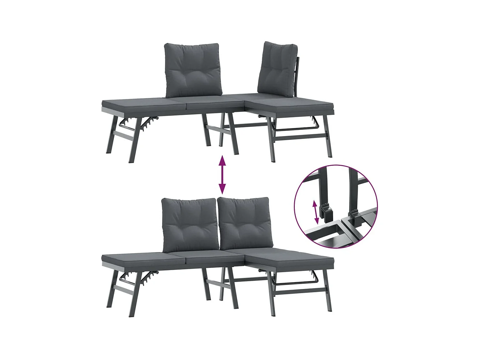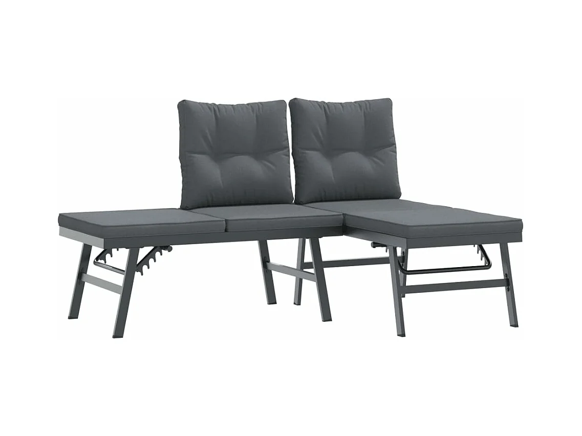 Tuinbanken met kussens 2 st gepoedercoat staal zwart