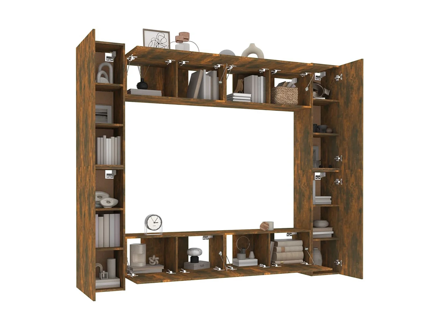 8-delige Tv-meubelset | Tv-Bank | TV-kast bewerkt hout gerookt eikenkleurig
