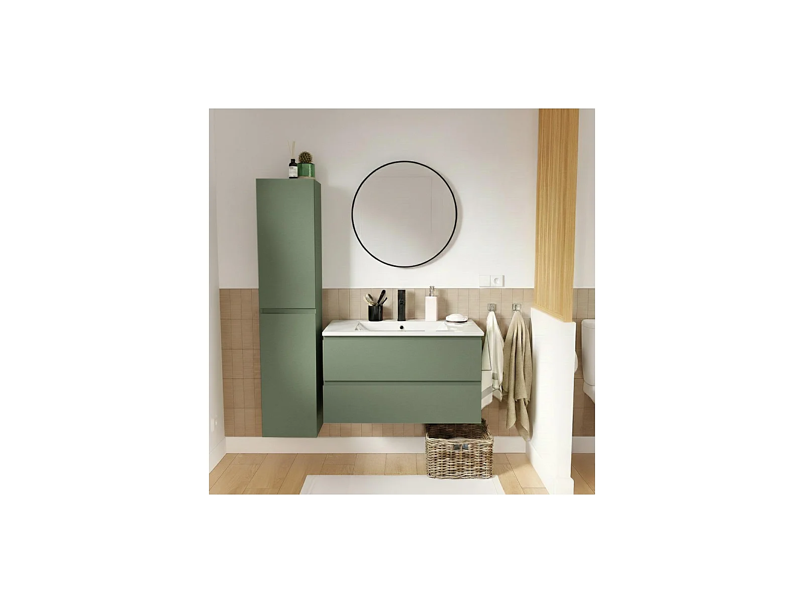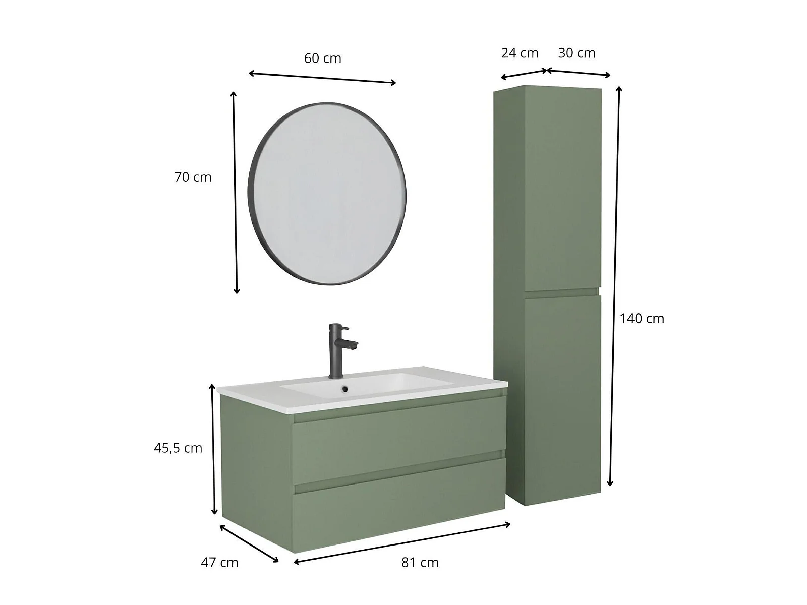 80 cm breed badmeubel met keramisch blad, kraan, spiegel en SORRENTO kolom