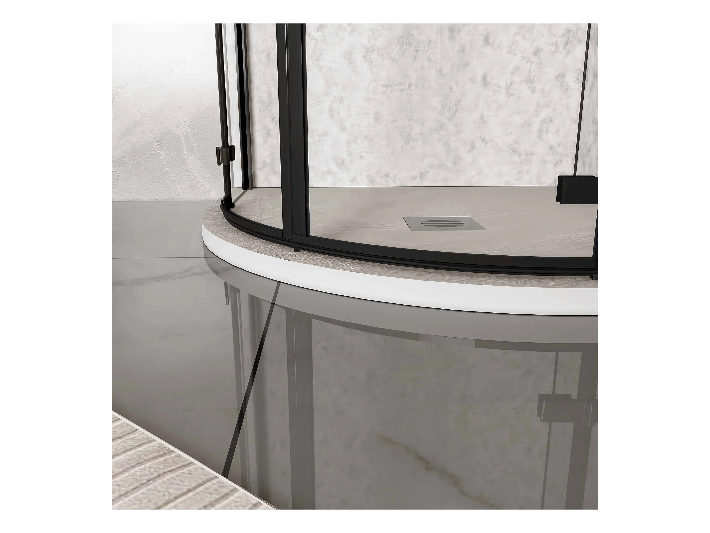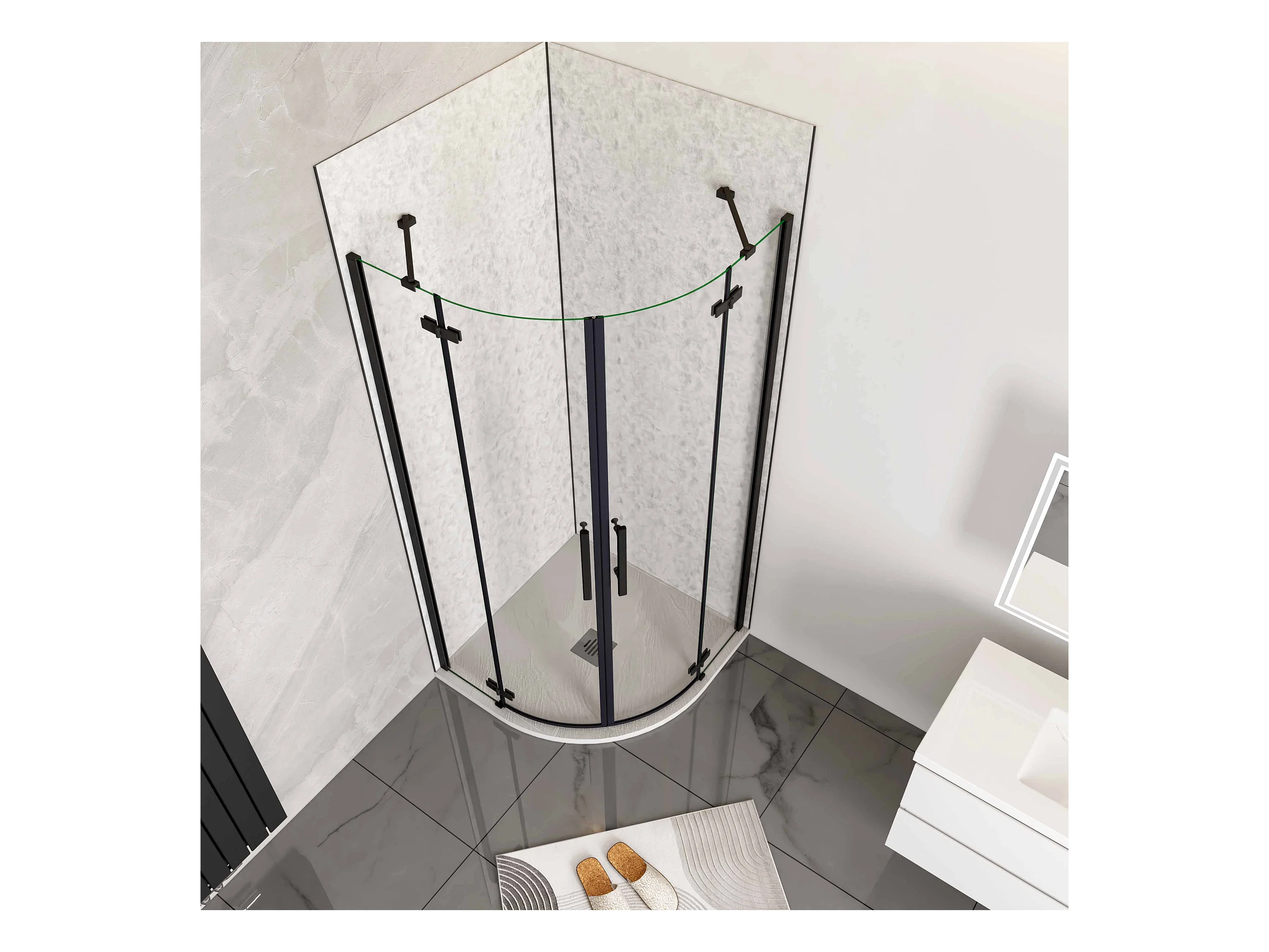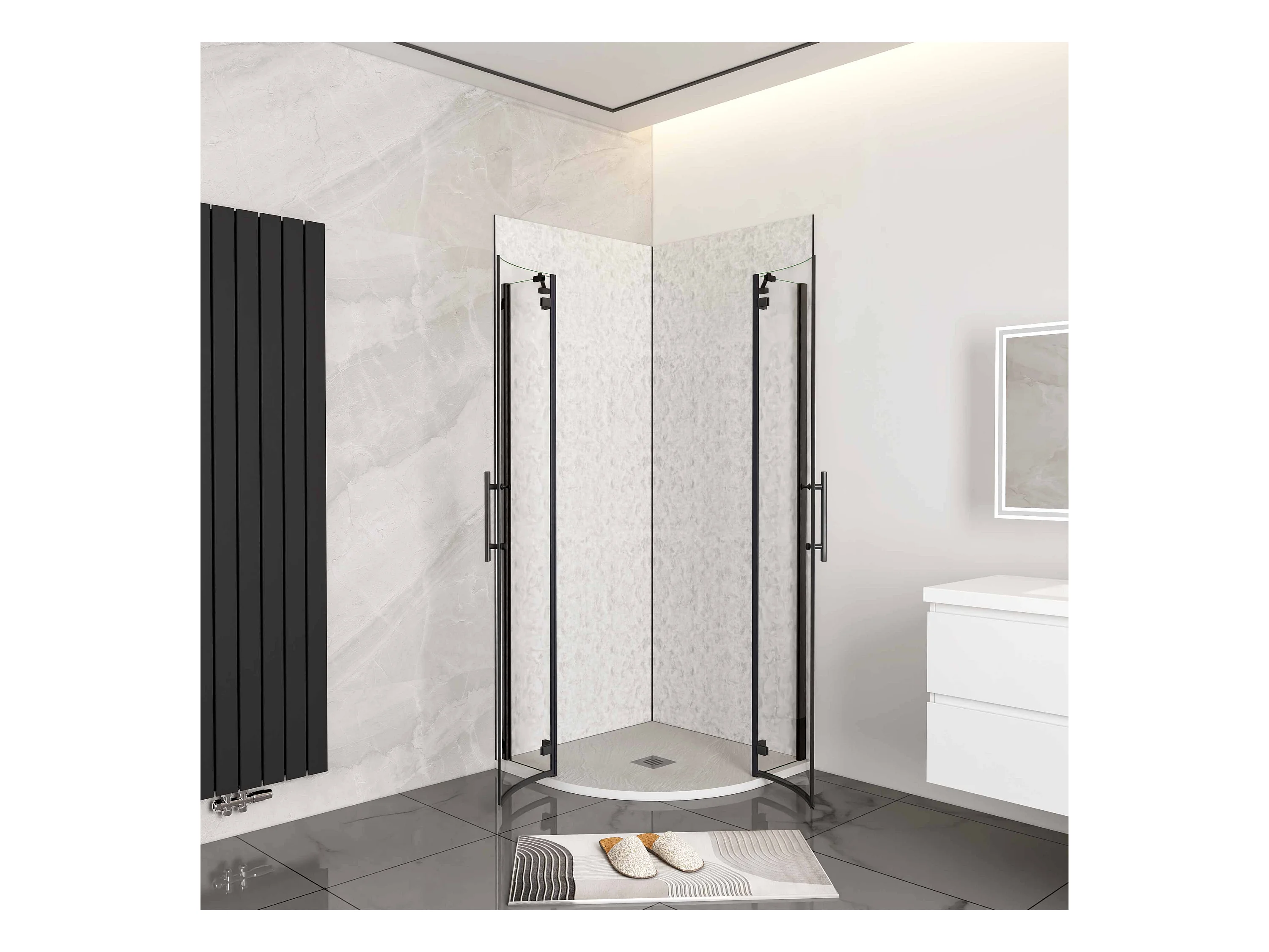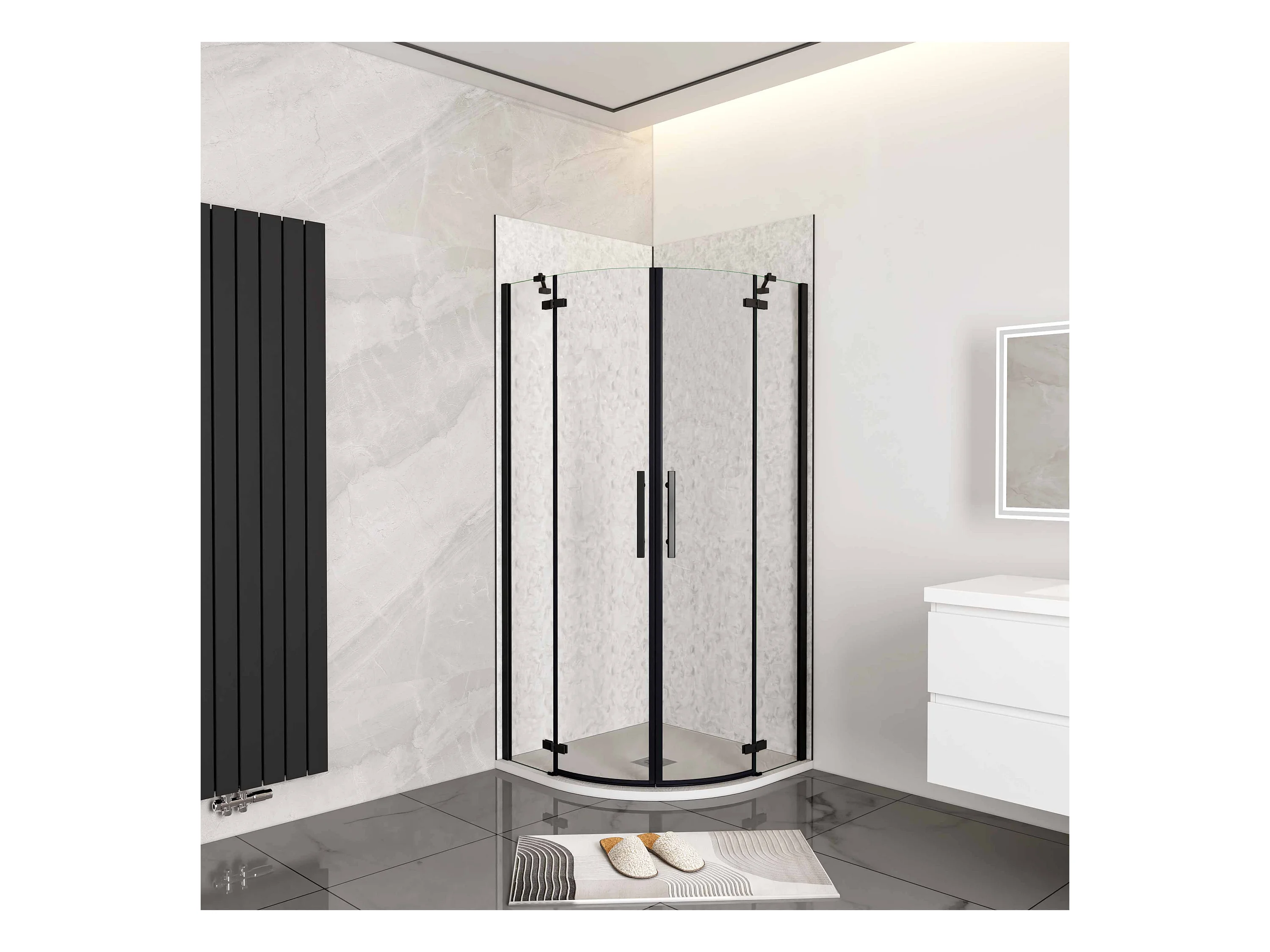80x80x195cm Kwartronde douchecabine,dubbele draaideur,hoek-instap douchecabine,6mm helder veiligheidsglas,antikalk,mat zwarte frame,inclusief douchebak