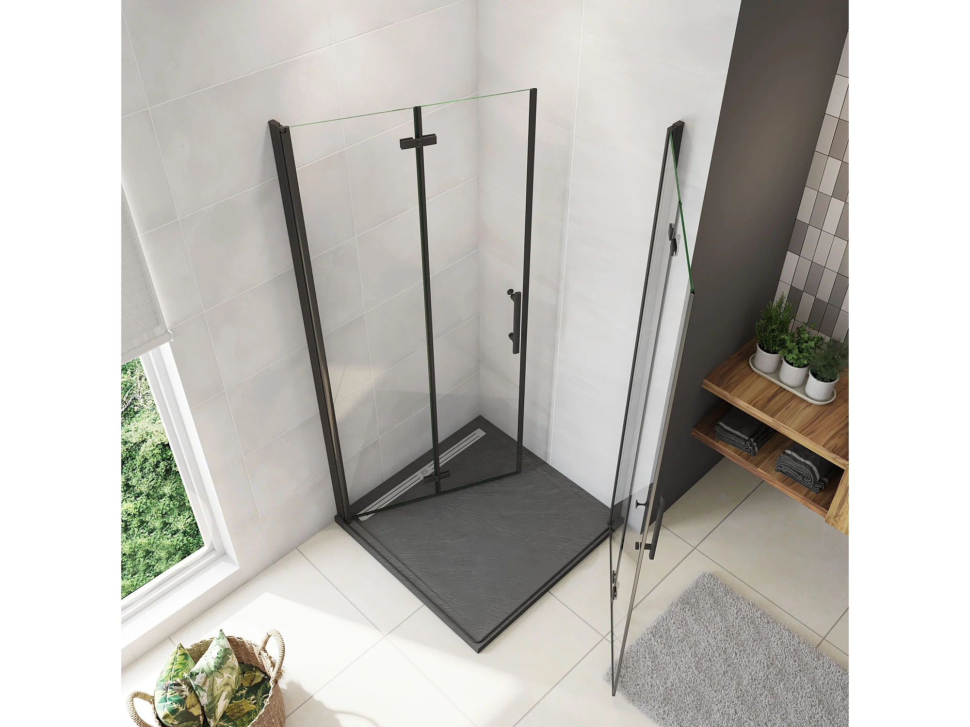 80x90x185cm Douchecabine Vierkant Hoekinstap Draaideur Antikalk Helder Glas Mat Zwart Profiel 6mm Veiligheidsglas Easy Clean