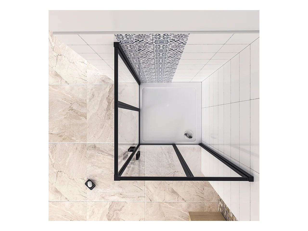 80x90x200cm Douchecabine met dubbele draaideur,6mm NANO helder veiligheidsglas,mat zwarte aluminium frame