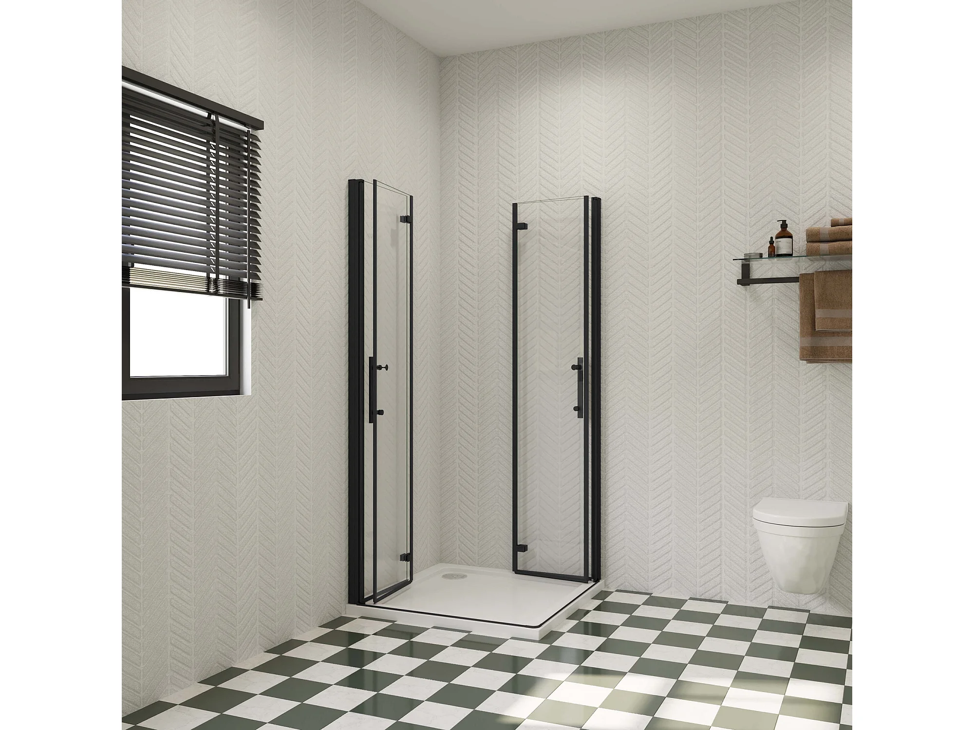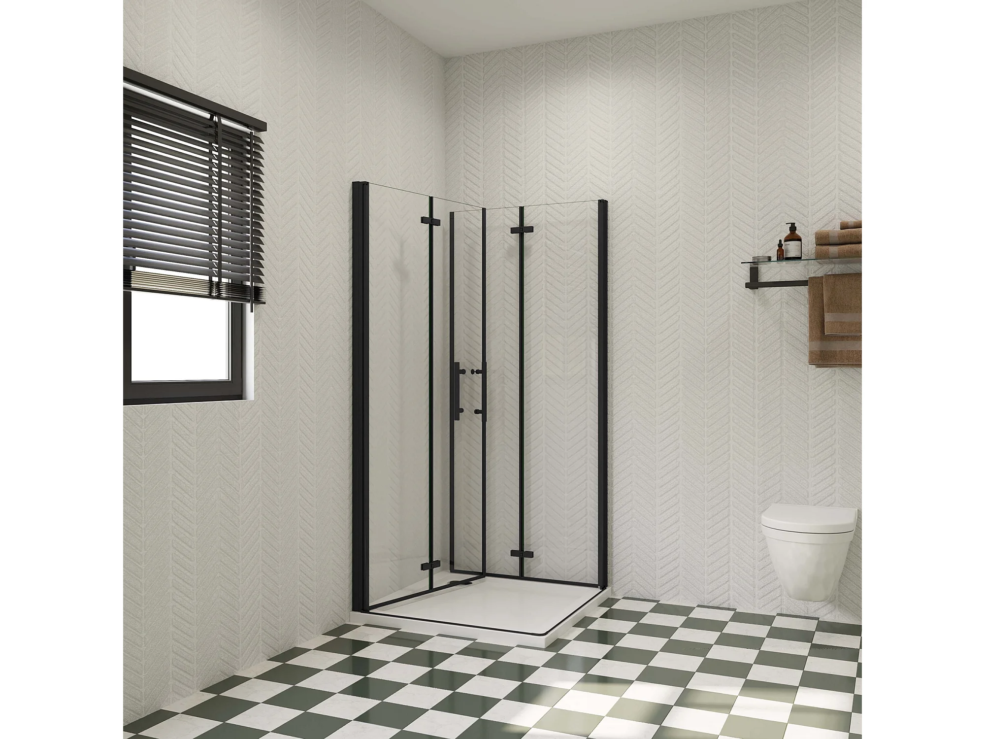 85x110x195cm Douchecabine Vierkant Hoekinstap Draaideur Antikalk Helder Glas Mat Zwart Profiel 6mm Veiligheidsglas Easy Clean
