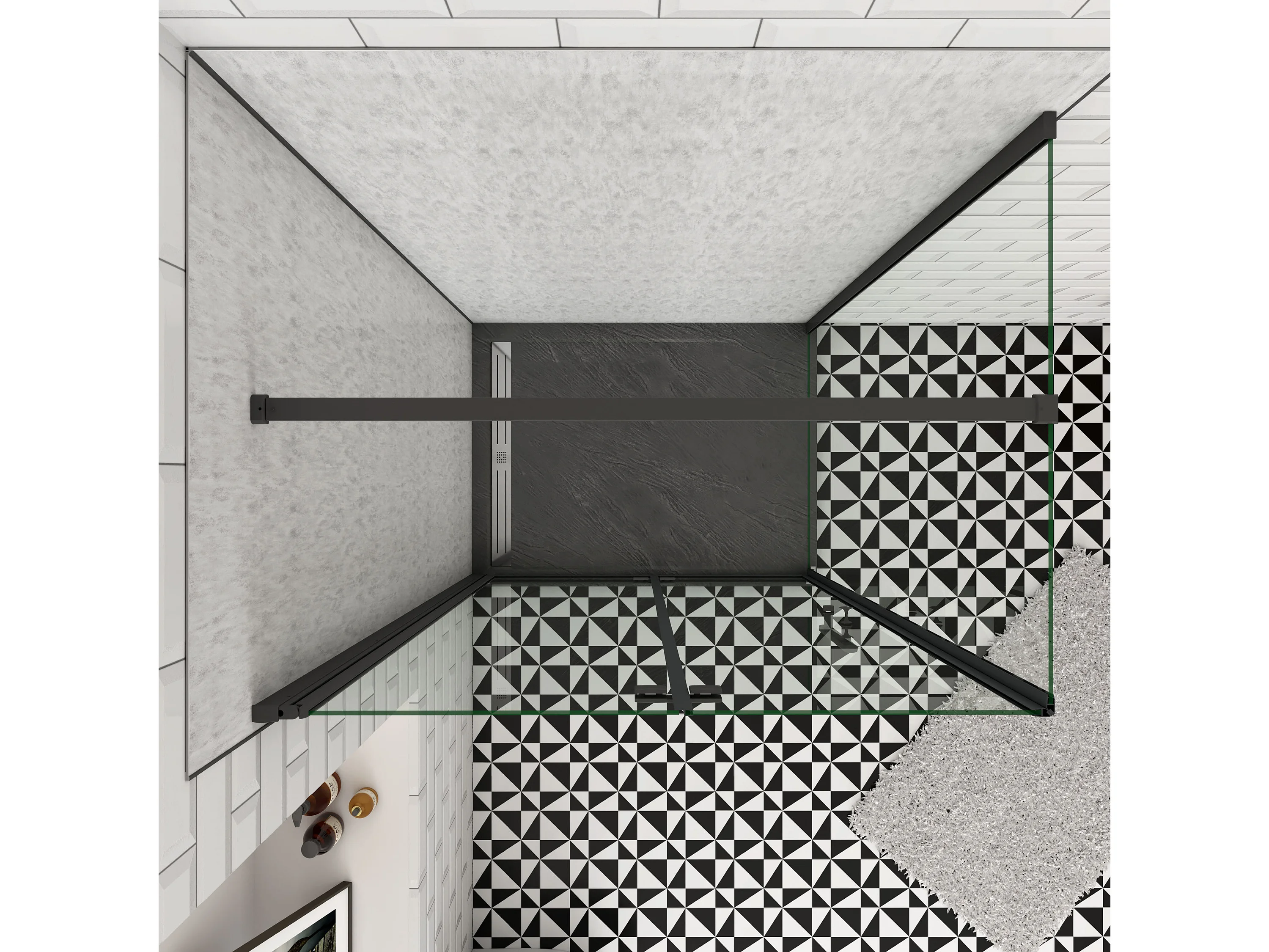 85x80x195cm douchecabine met inklapbare vouwdeur en vaste zijwand, 6mm helder EasyClean veiligheidsglas,mat zwarte aluminium frame, N-vorm 90cm Stabilisatiestang