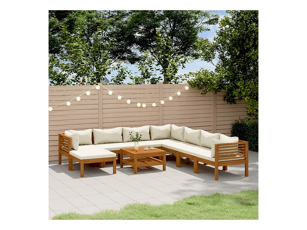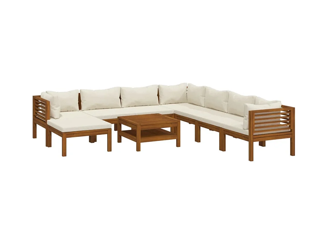 9-delige Loungeset met crèmekleurige kussens massief acaciahout