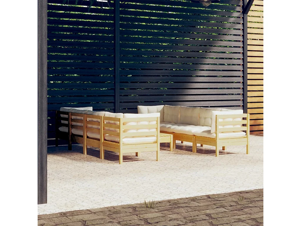 9-delige Loungeset met crèmekleurige kussens massief grenenhout