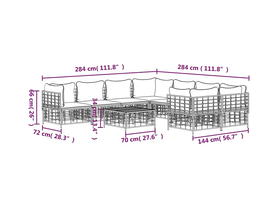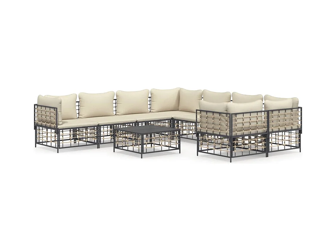 9-delige Loungeset met kussens poly rattan antracietkleurig