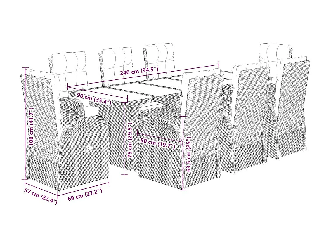 9-delige Tuinset poly rattan zwart