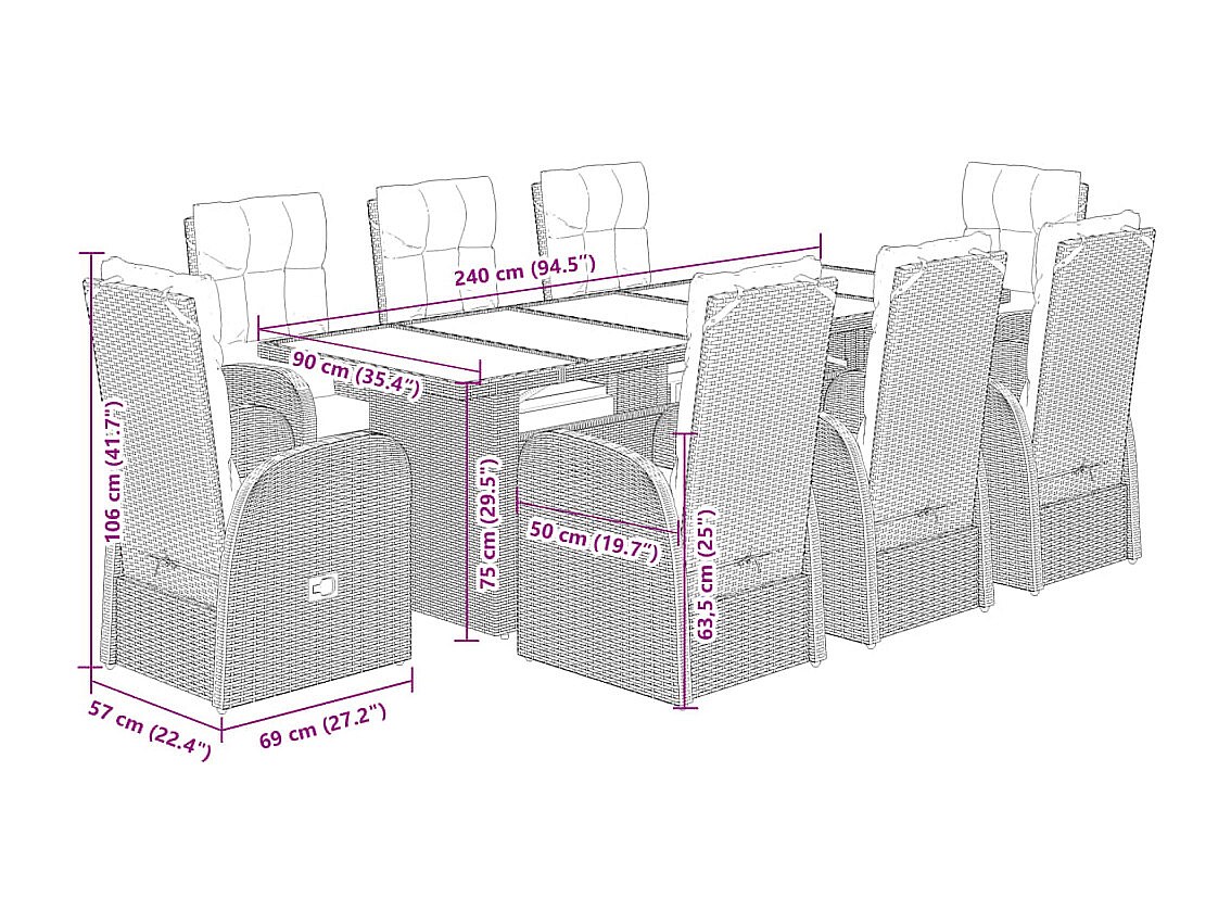 • Afmetingen: 240 x 90 x 75 cm (L x B x H)