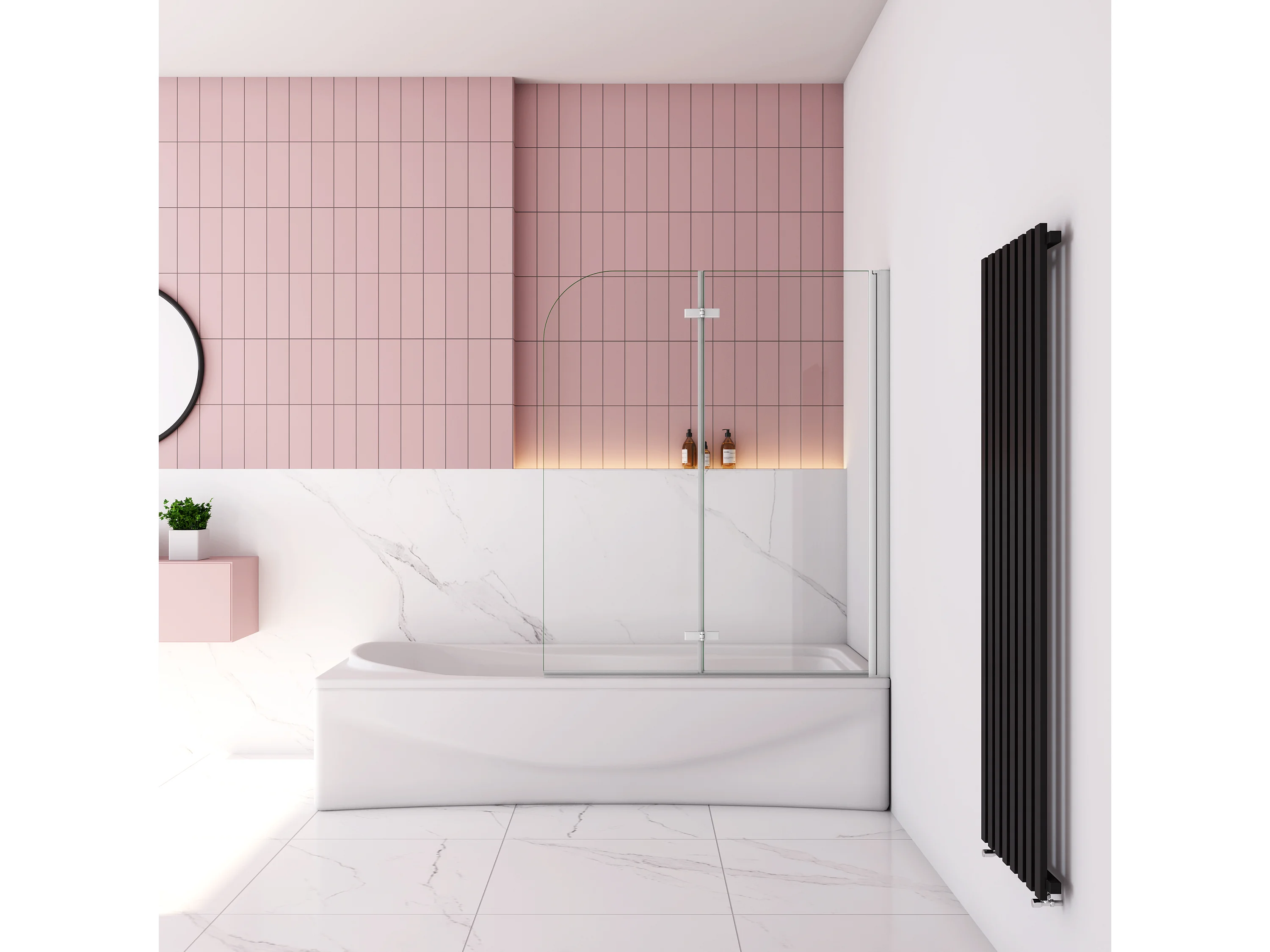 90x140cm Badscherm badwand 2 panelen vouwbaar,6mm NANO helder ESG-veiligheidsglas- mat zwart profiel