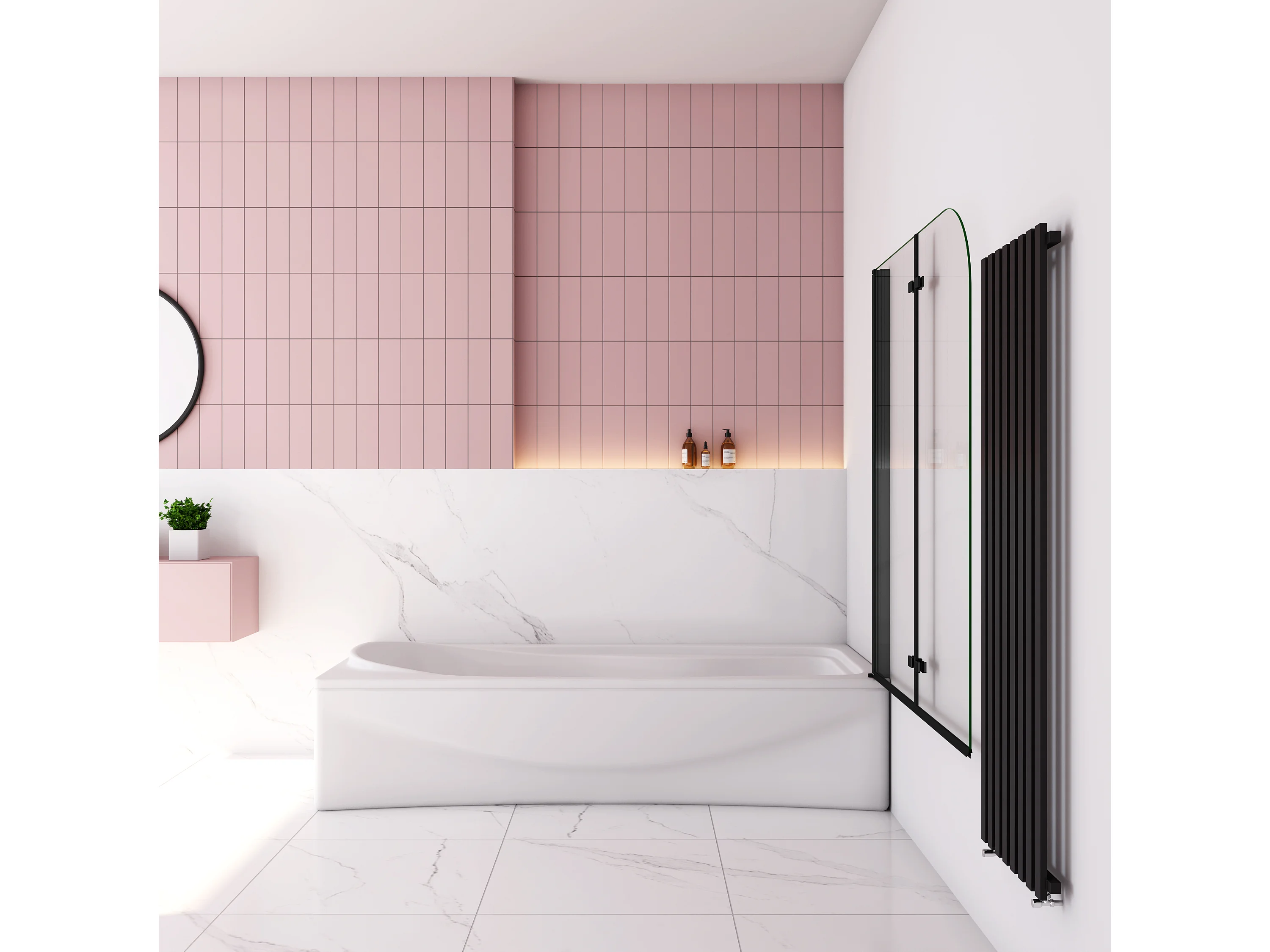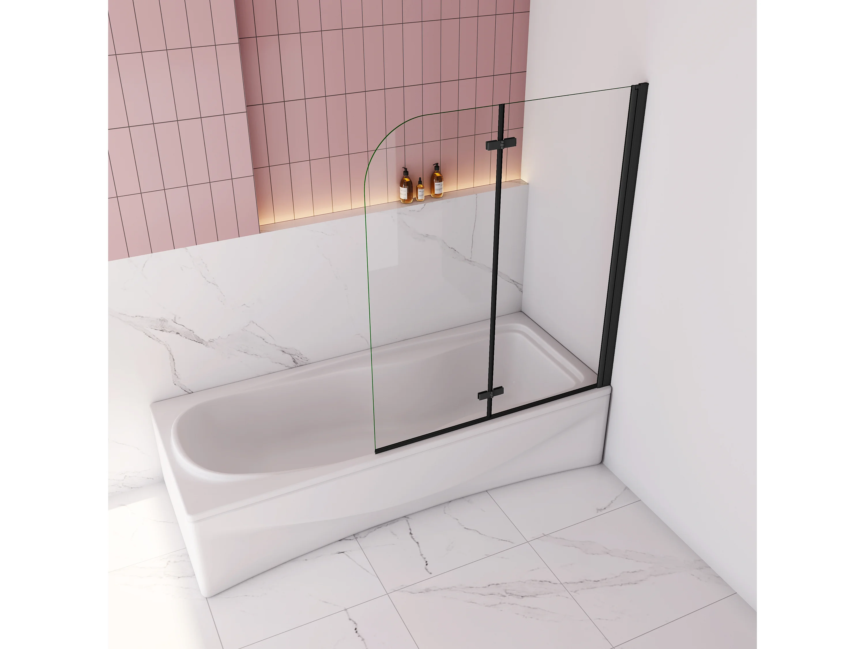 90x140cm Badscherm badwand 2 panelen vouwbaar,6mm NANO helder ESG-veiligheidsglas- mat zwart profiel