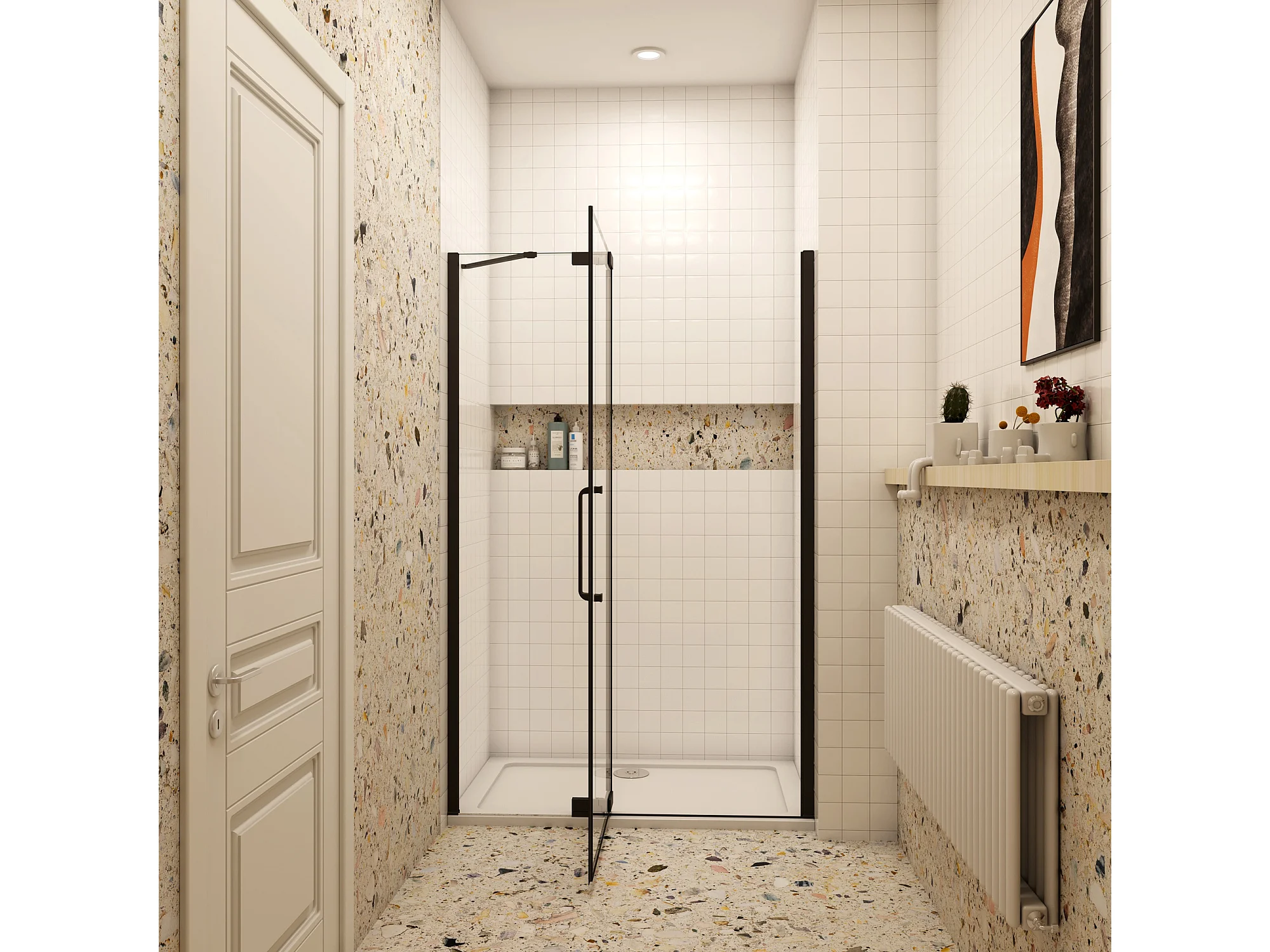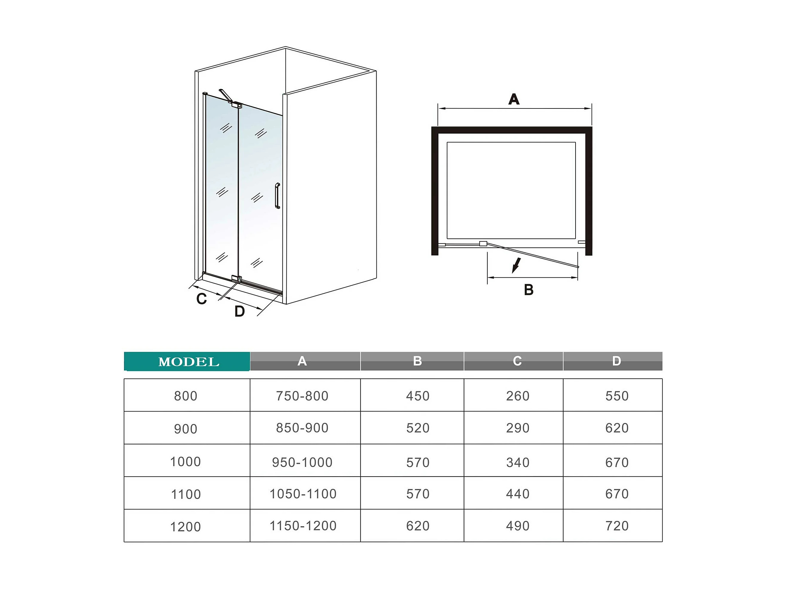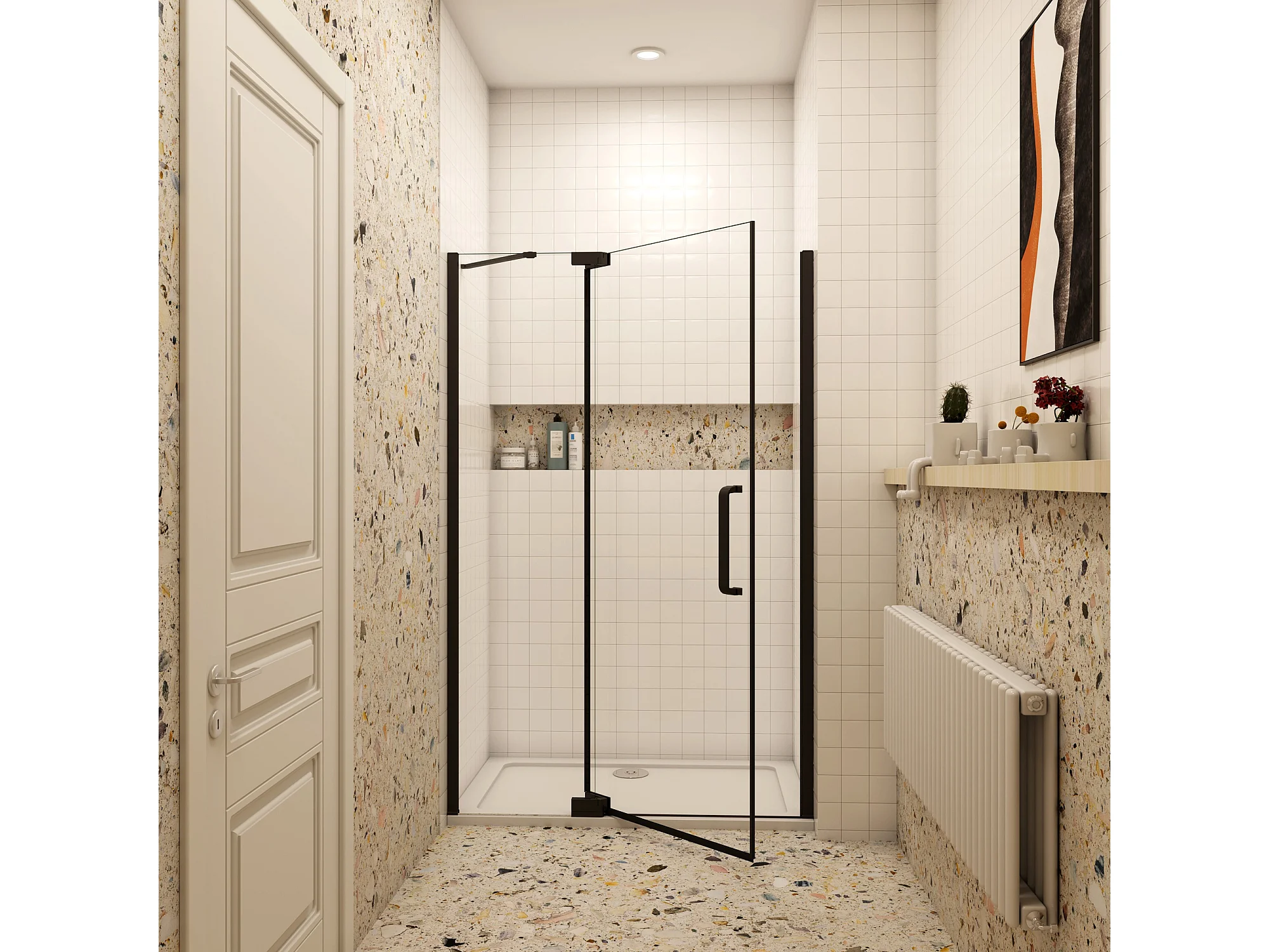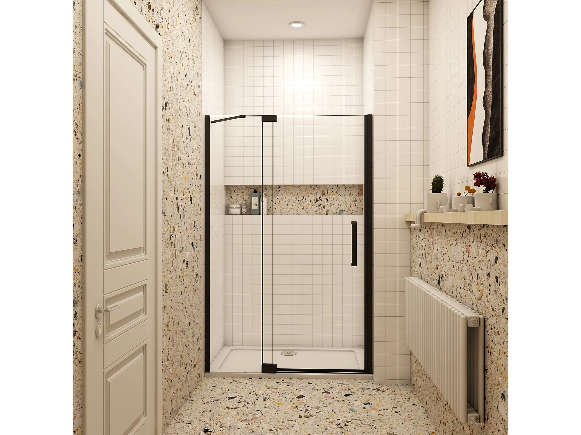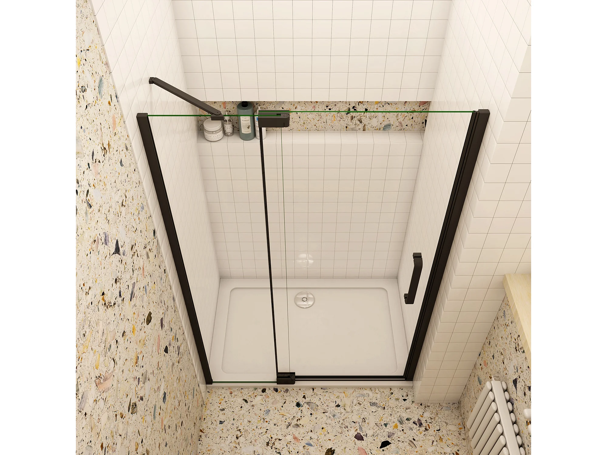 90x195cm Douchedeur,90° draaideur,8mm NANO veiligheidsglas,mat zwart
