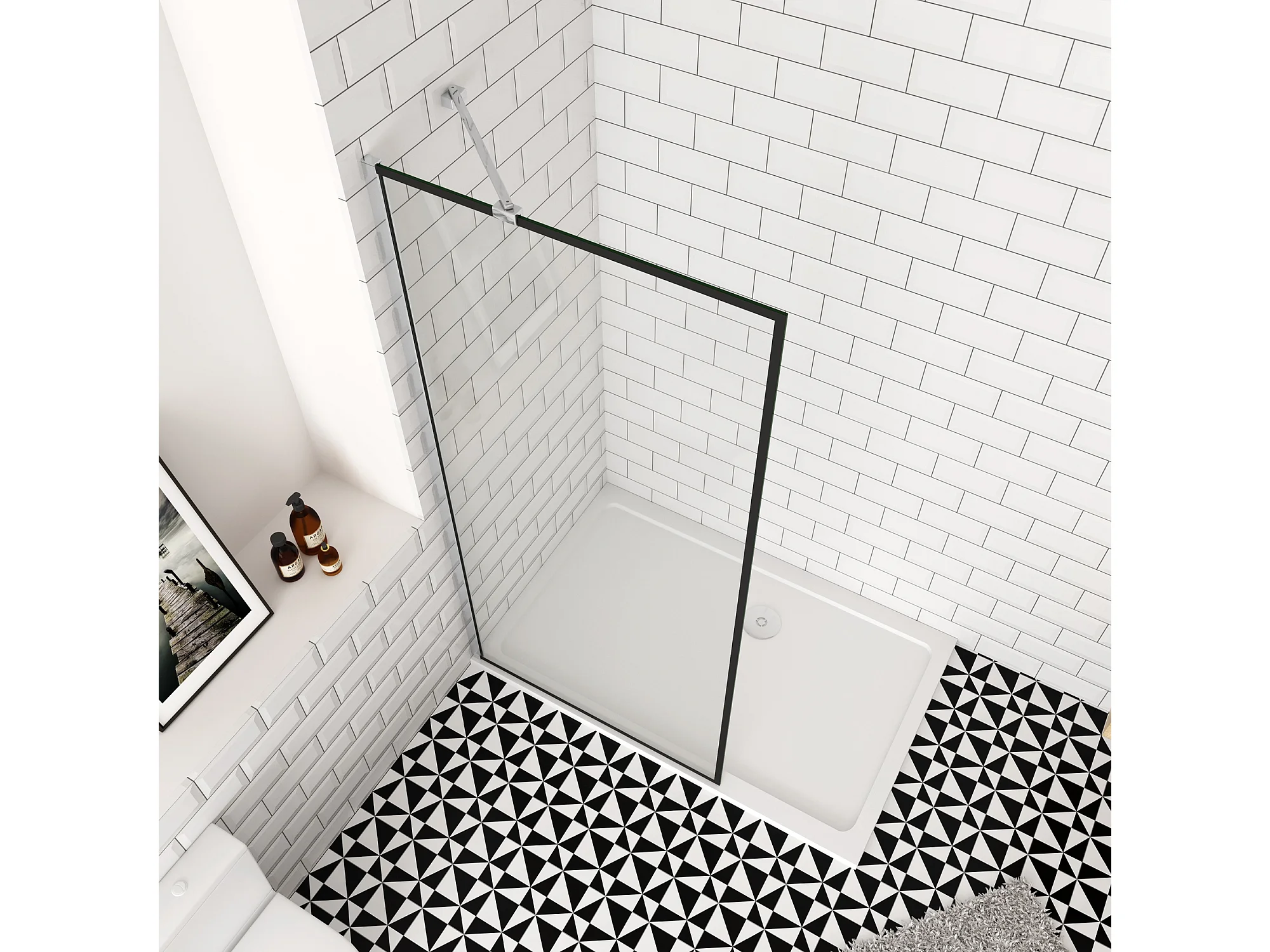 90x200cm inloopdouche-douchecabine,8mm mat zwart kader en raste gehard glas,easyclean,antikalk,stabilisatiestang 140cm(snijdbaar),glanzend chroom profiel