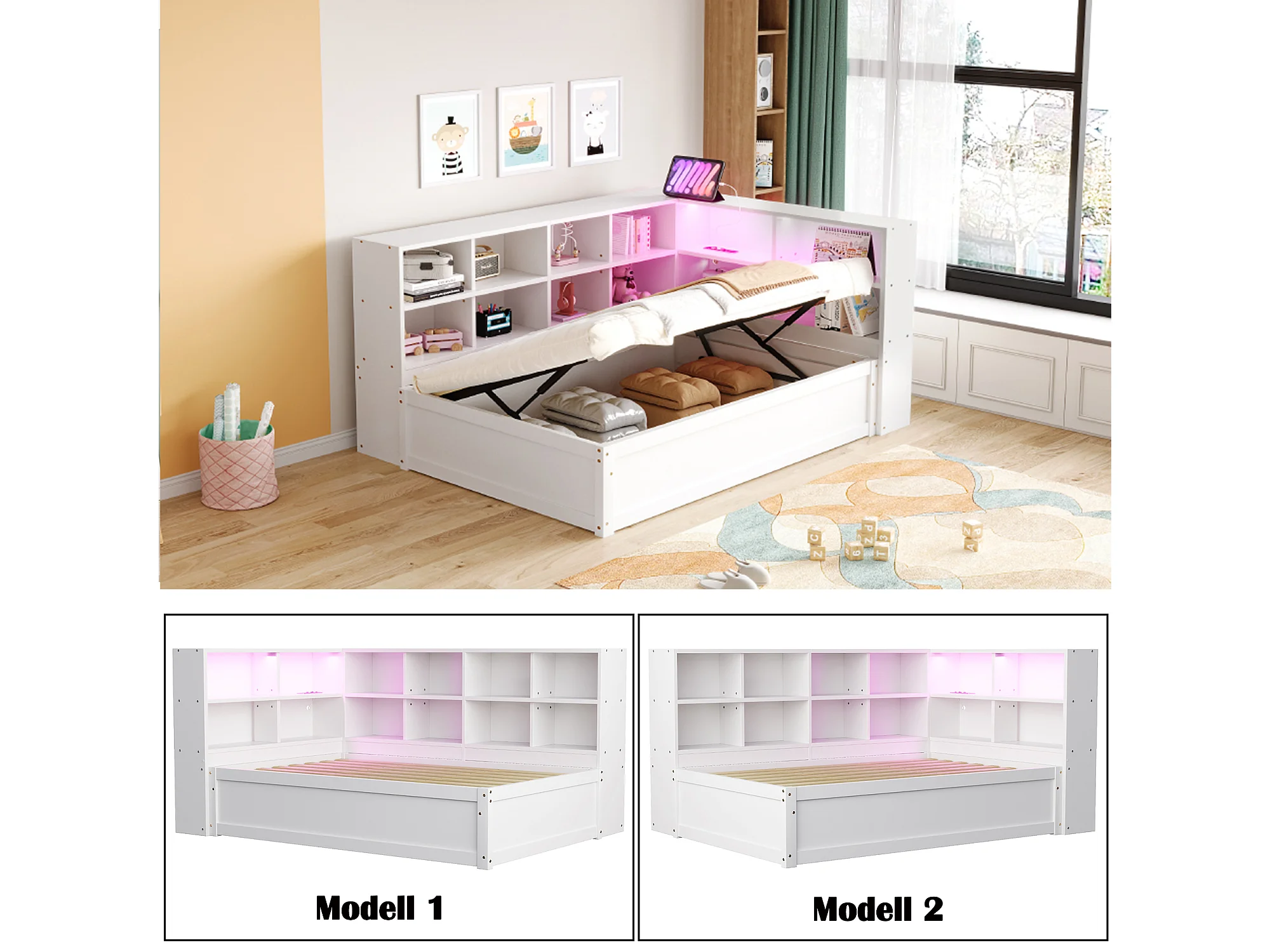 Kinderbed 90x200 cm, massief houten frame, lattenbodem, lades en opbergruimte onder het bed, wit (90x200 cm)