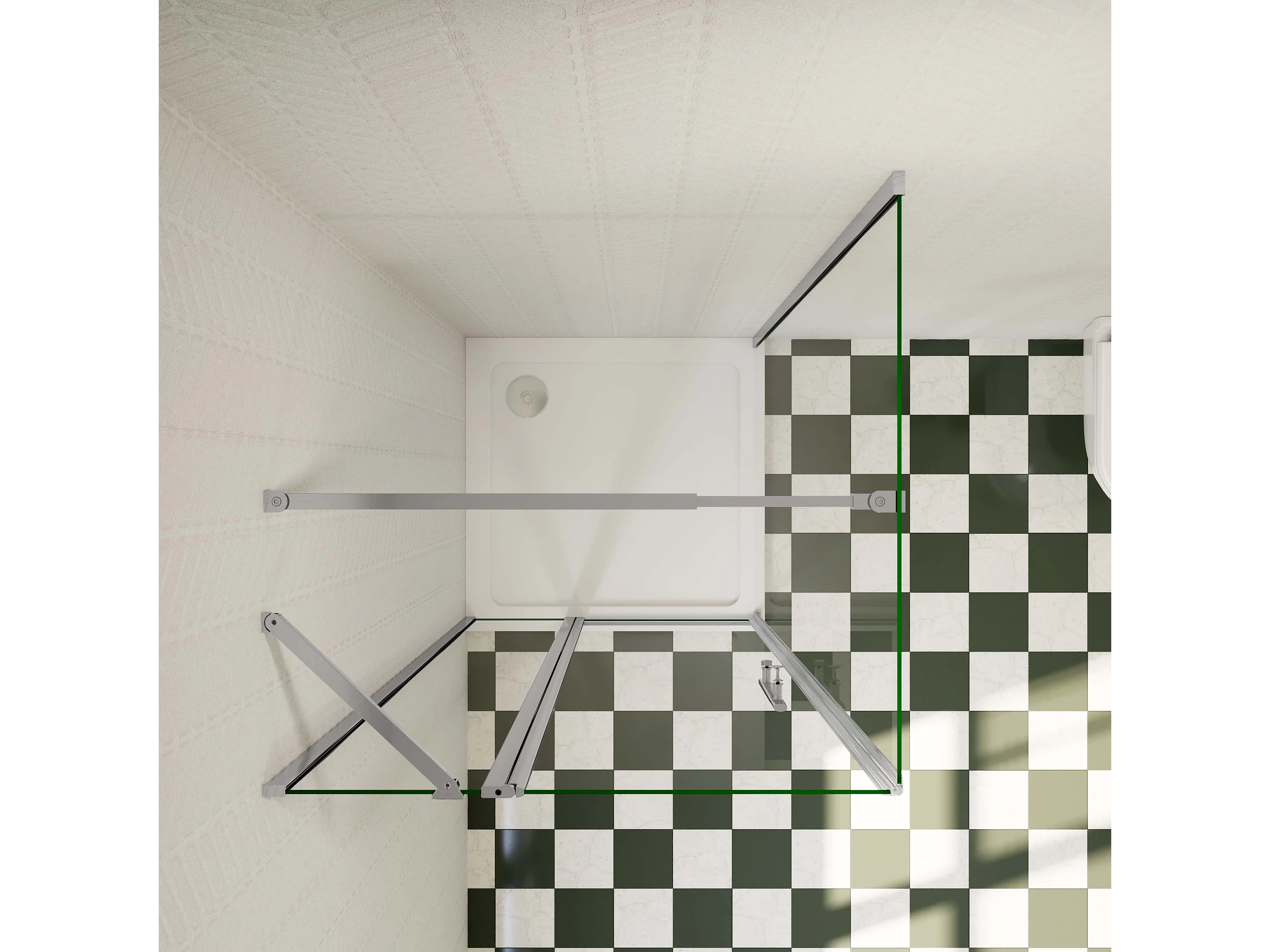 90x80x195cm Douchecabine draaideur+zijwand,6 mm NANO EasyClean veiligheidsglas,73-120 cm Stabilisatiestang (inkortbaar),profiel van glanzend chroom.