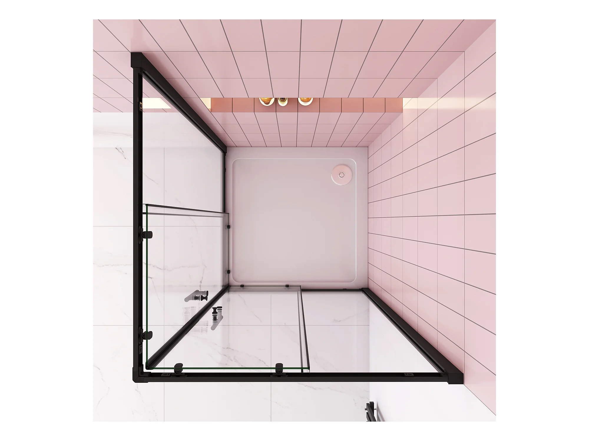 90x90x195cm Douchecabine met dubbele schuifdeur,6mm NANO EasyClean veiligheidsglas,Mat Zwart Profiel