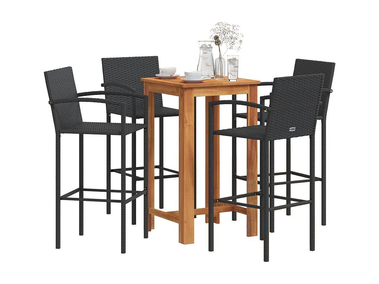 Aalst 5-delige Tuinbarset massief acaciahout en poly rattan zwart