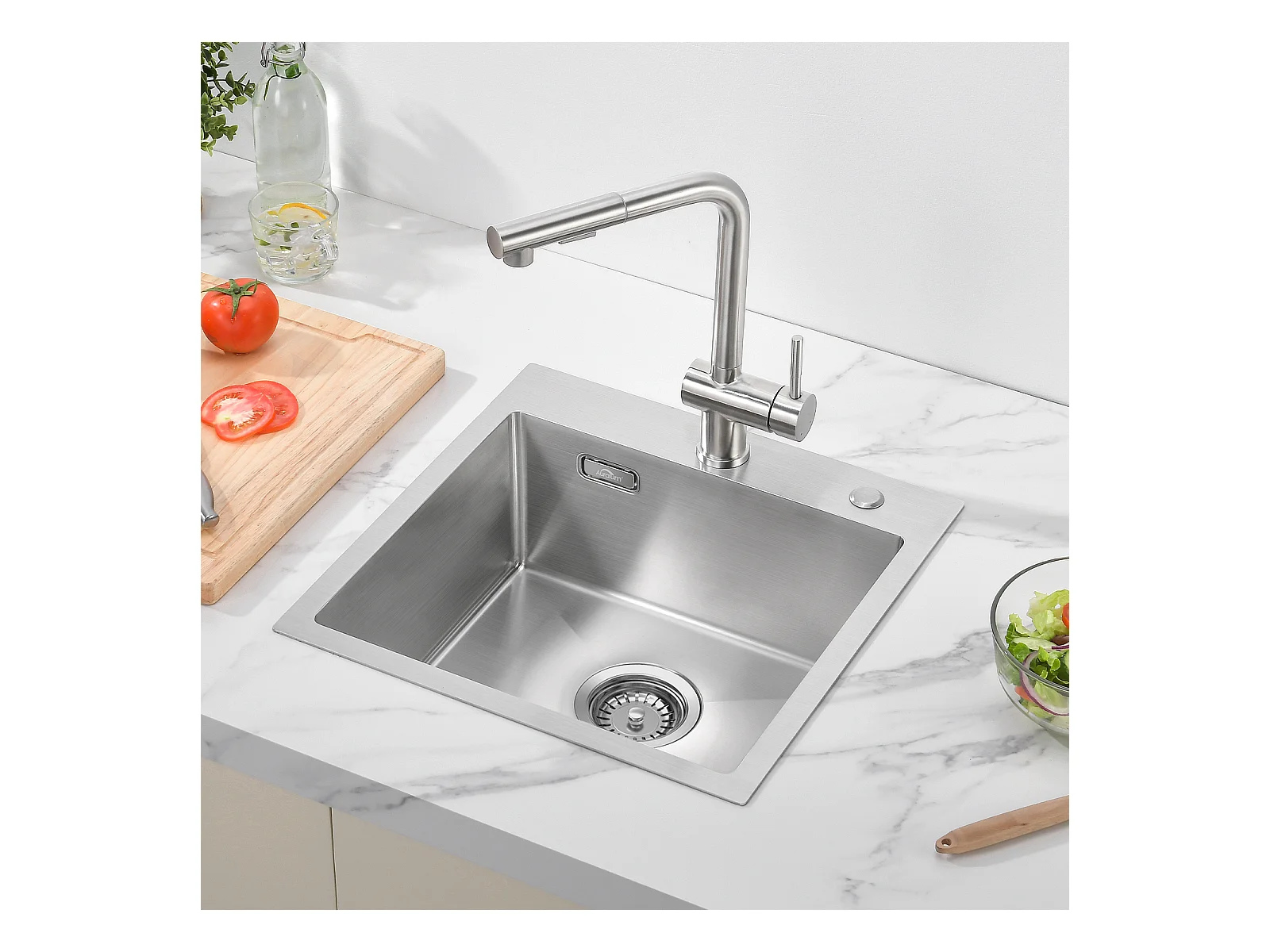 Aanrecht 1 Bak 45x45CM Roestvrij Staal 304, Inbouw en Opzetbaar + Flexibele Keukenkraan Hoge Uitloop Draaibaar