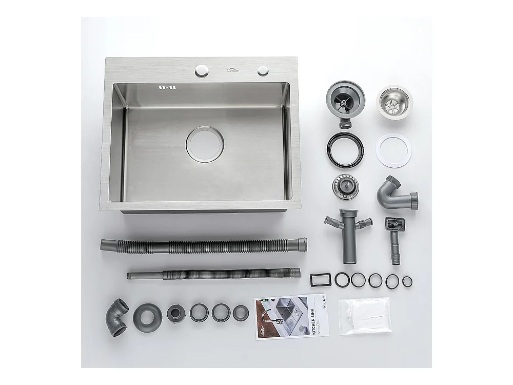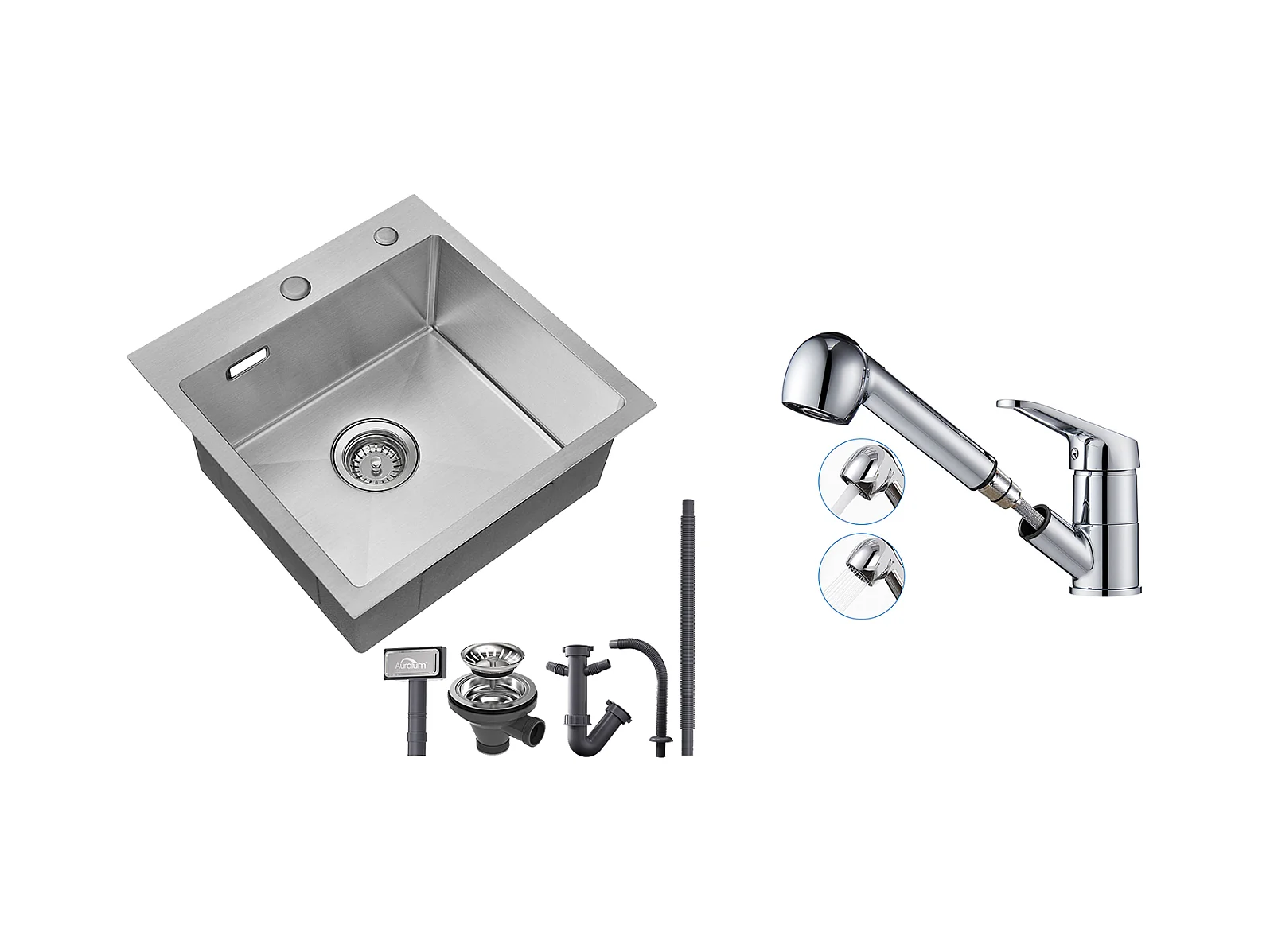 Aanrecht 1 Bak 45x45CM RVS 304, Inbouw en Opzetbaar + Draaibare Keukenkraan 360° Uittrekbare Handdouche