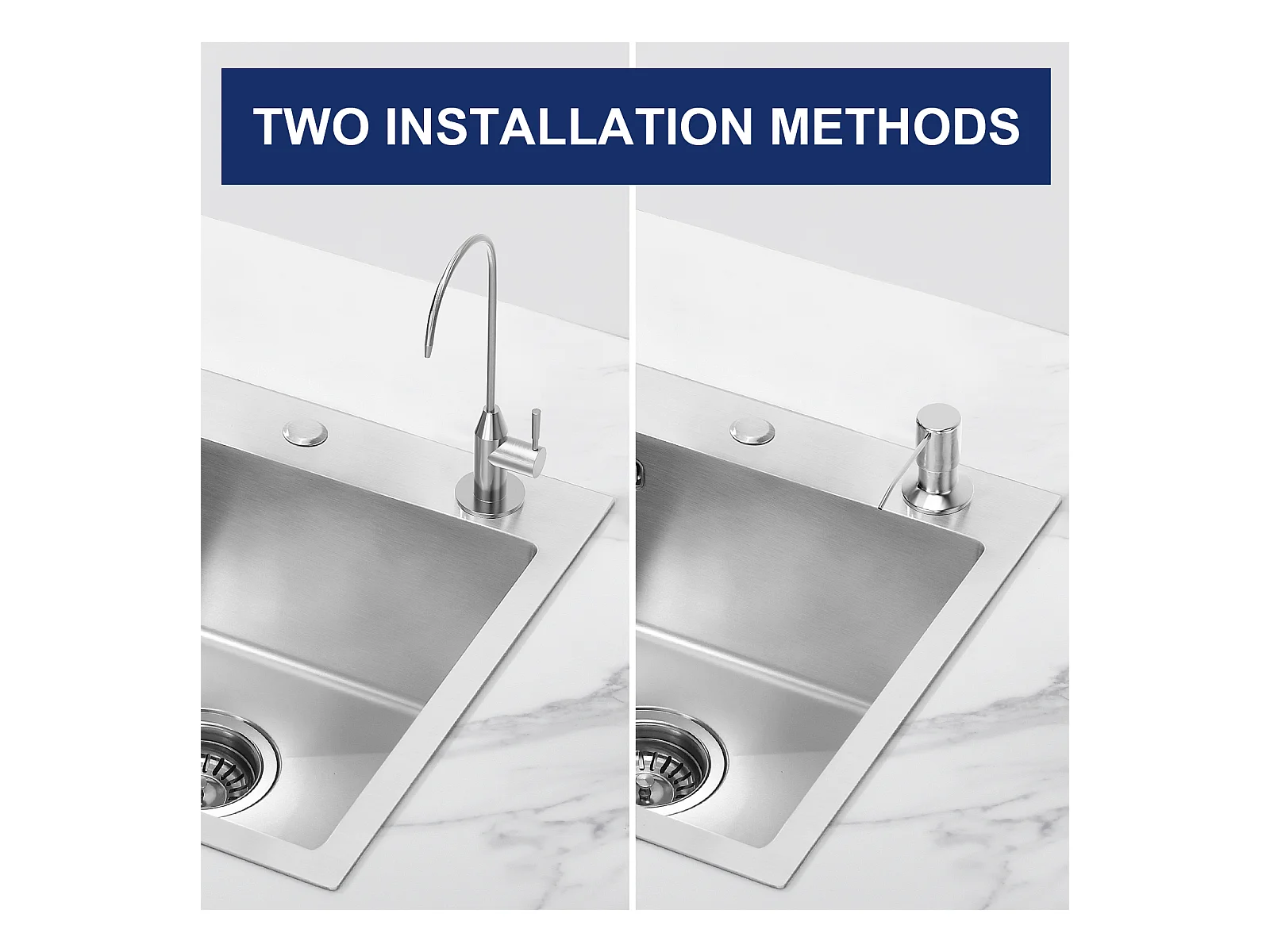Aanrecht 1 bak 45x45CM 304 roestvrij staal, inbouw en op te zetten + 360° draaibare keukenkraan met warm/koud water, verchroomd, EU model