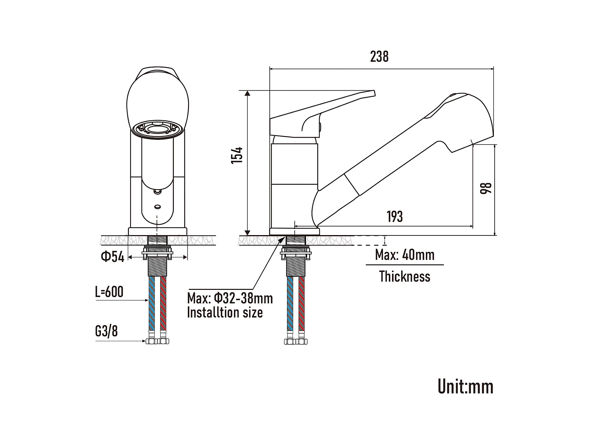 Aanrecht 1Kom 45x45CM RVS 304 , Inbouw/Opzet + Keukenmengkraan, met Uittrekbare Handdouche, 2 Modi, Koud/Warm Water, Geborsteld