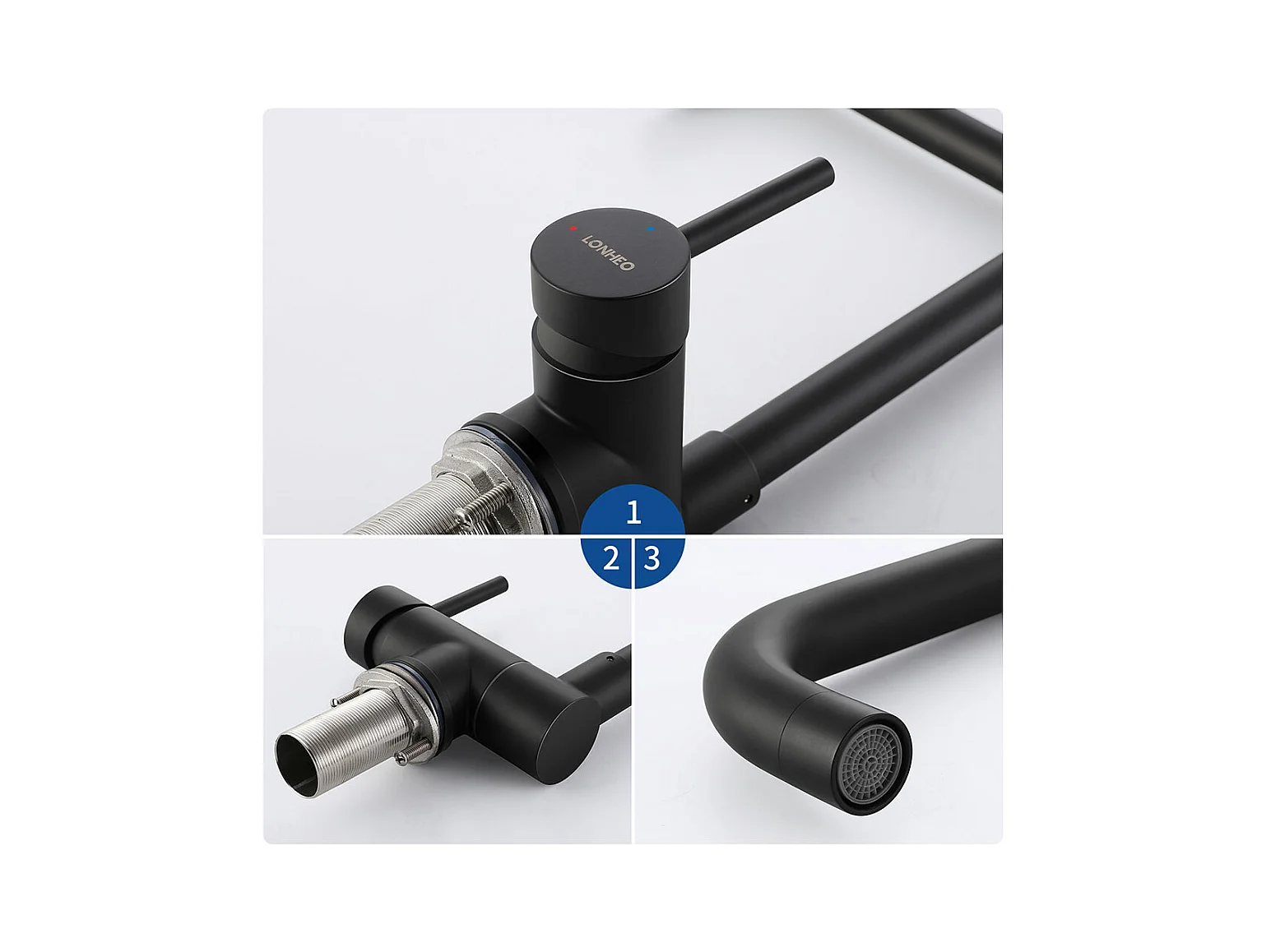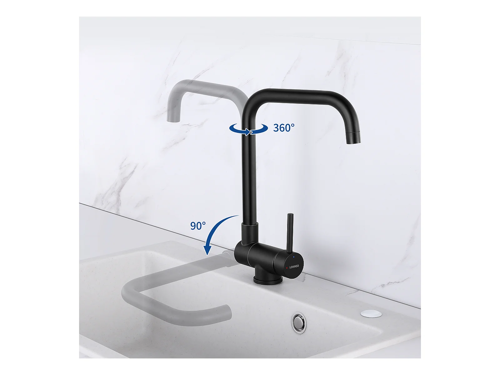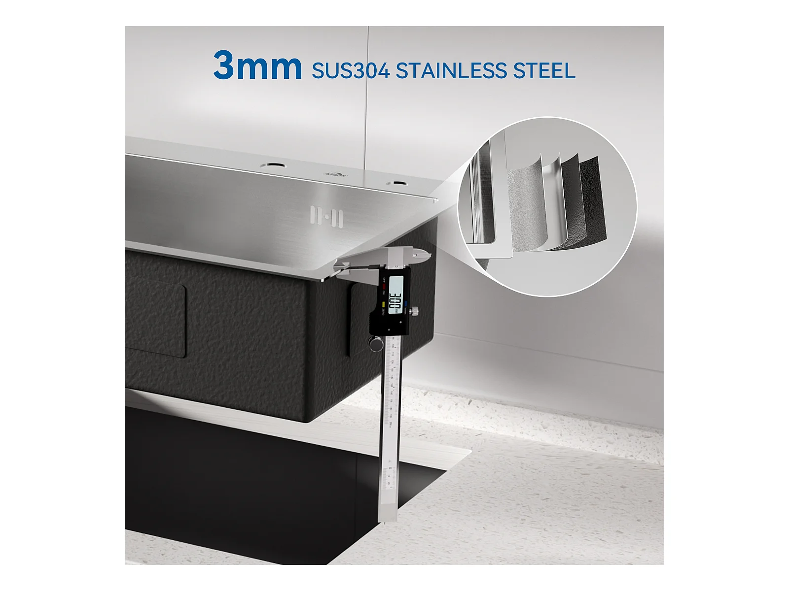 Aanrecht 1 Bak 55*45CM Inbouw- en Opbouwspoelbak met DistribuZeephouder + 360° Draaibare Keukenkraan, Zwart met witte stip