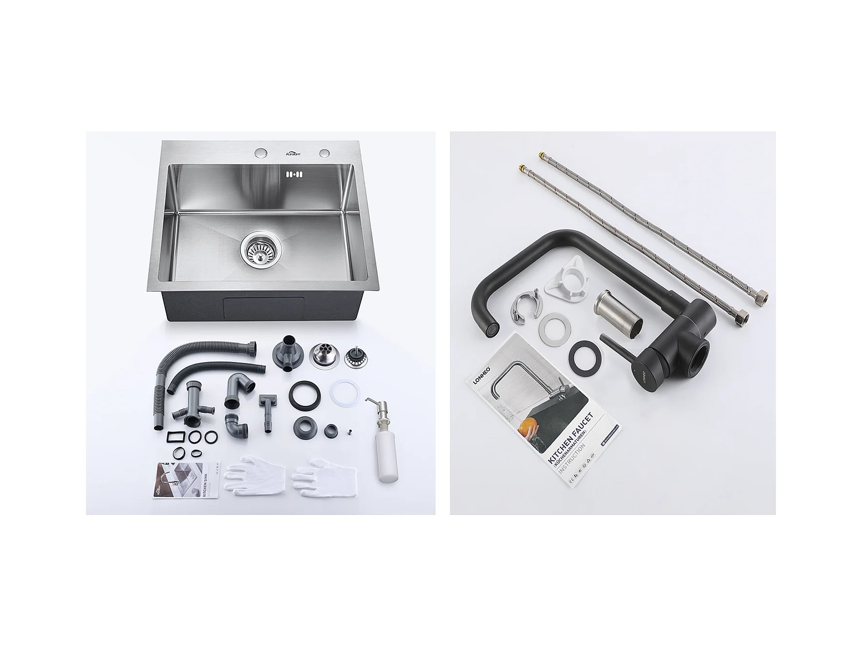 Aanrecht 1 Bak 55*45CM Inbouw- en Opbouwspoelbak met Zeepdispenser+Raba KeukenmengkraanTafel Draaibaar 360° Koud Water Warm,Noi