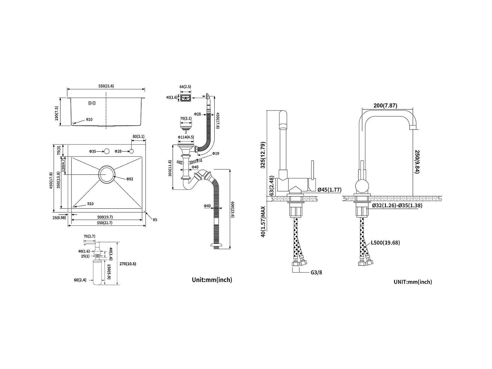 AuraLum Max Gootsteen 1 Bak 55x45x18.5CM RVS Inbouw Gootsteen Donkergrijze Aanrecht Keuken met Zeepdistructor/Drainage Set,EU Model