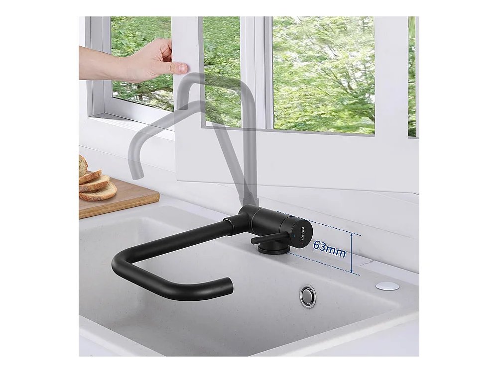 Aanrecht 1 Bak 55*45CM Zwart+Opklapbare KeukenmengkraanE 360° draaibaar, met vouwhandvat tegen raam, zwart