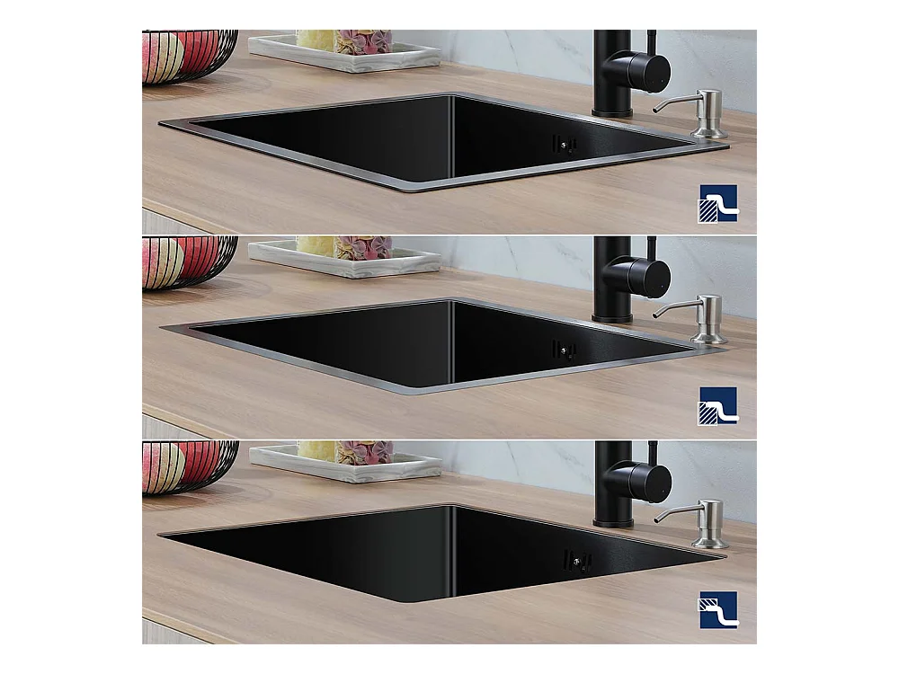 LONHEO MAX Aanrecht 1 Bak 74*44*20CM, in geborsteld roestvrij staal met sifon en over-plein, zwart